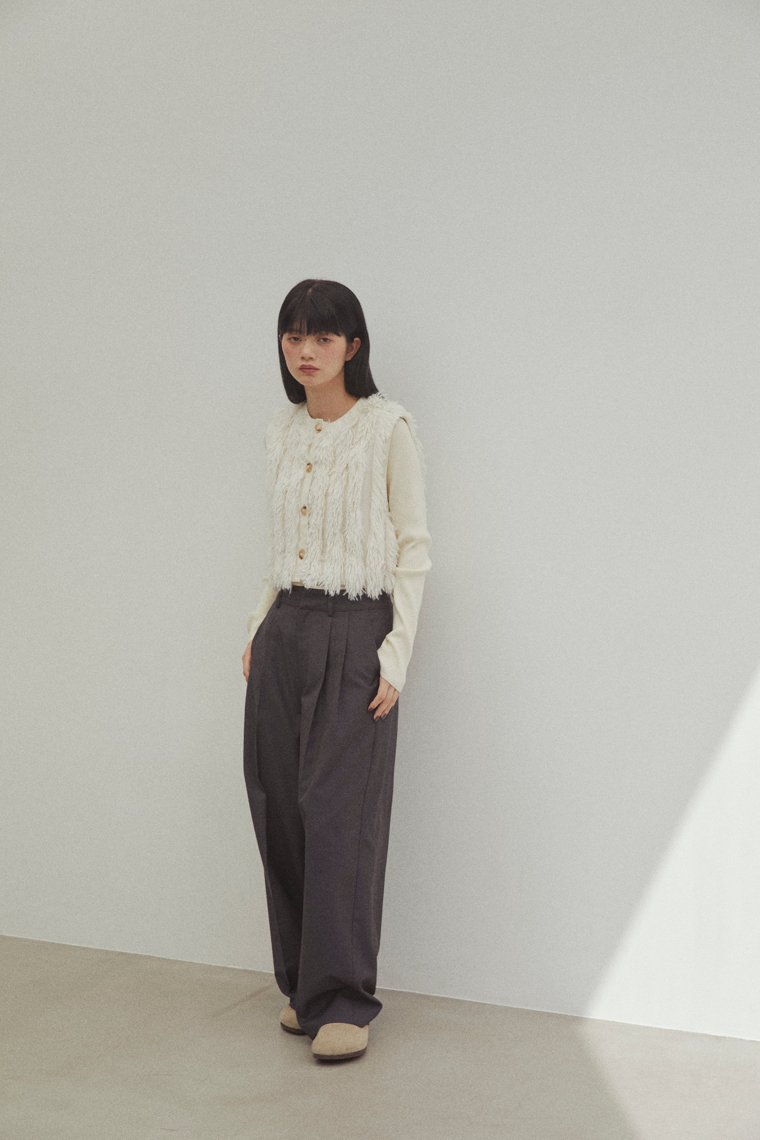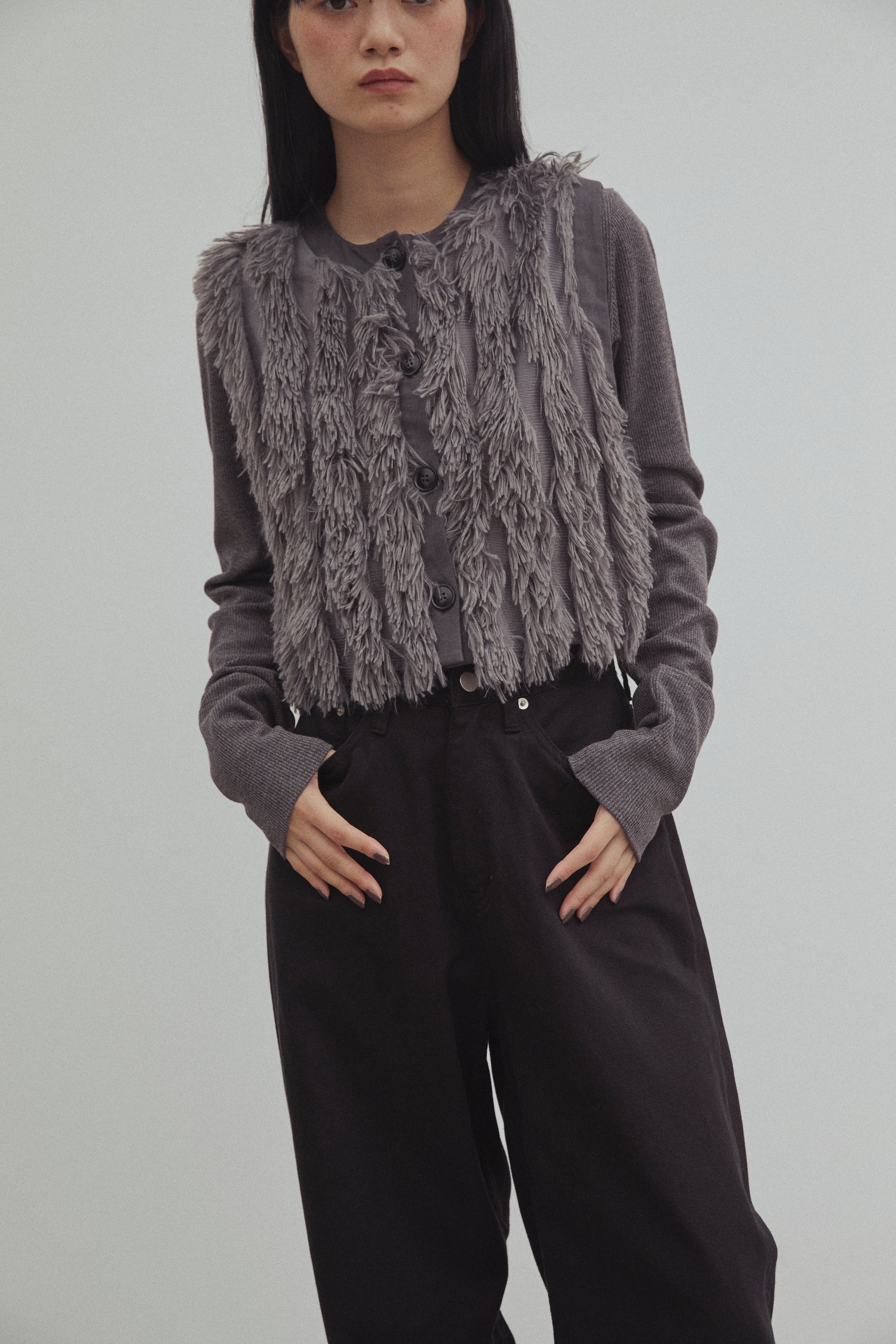この製品は素材の特性上、毛が抜けやすい為、他の衣類や身の回り品に付着することがありますが着用回数を重ねることにより毛抜けは徐々に安定してまいります。十分なお手入れをおすすめいたします。