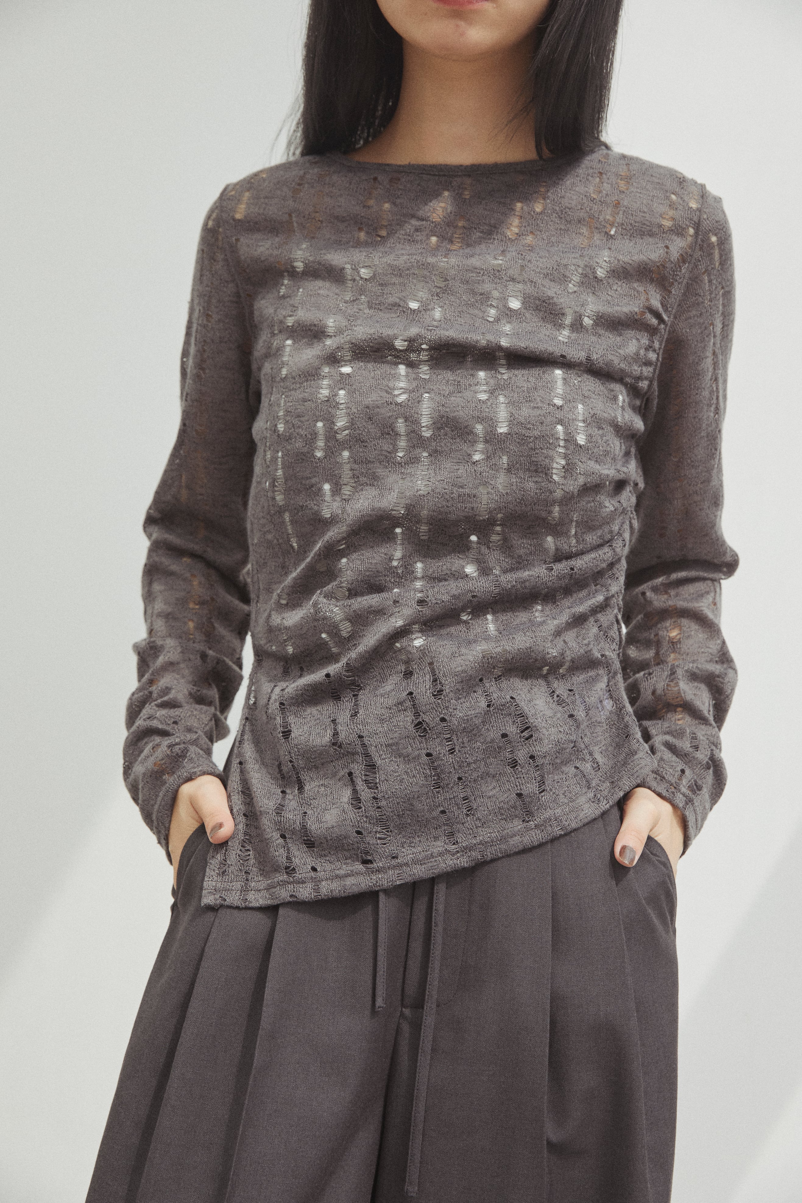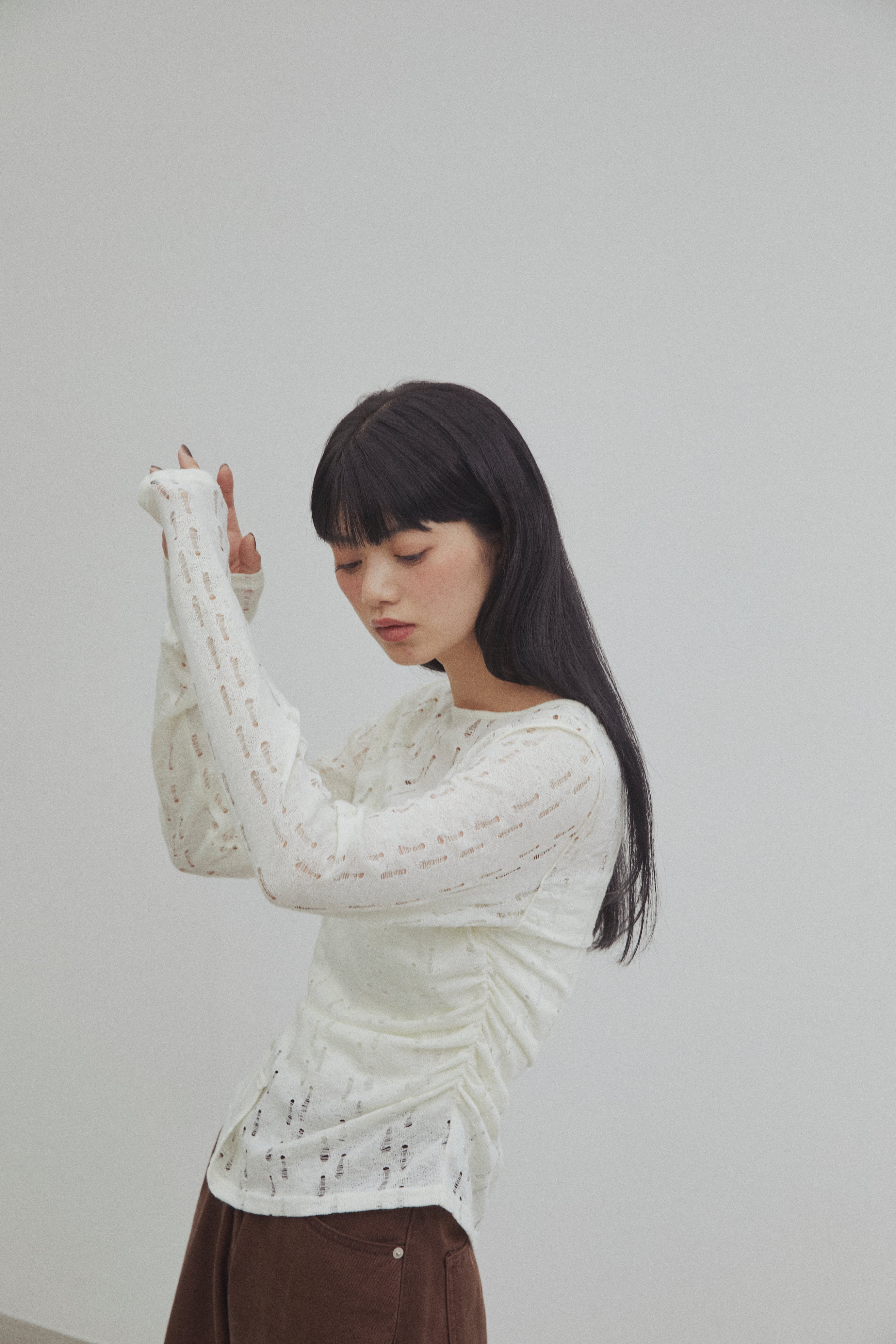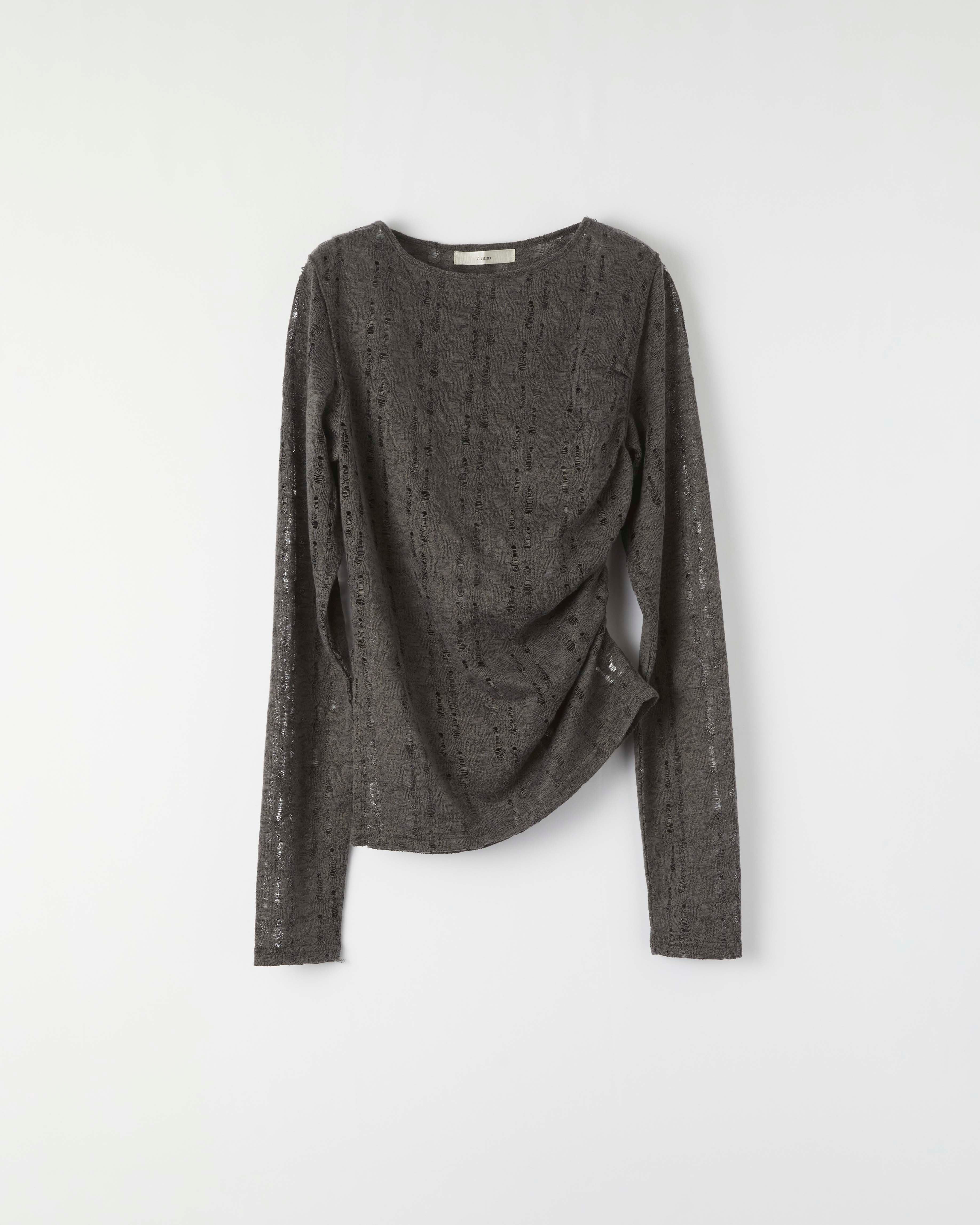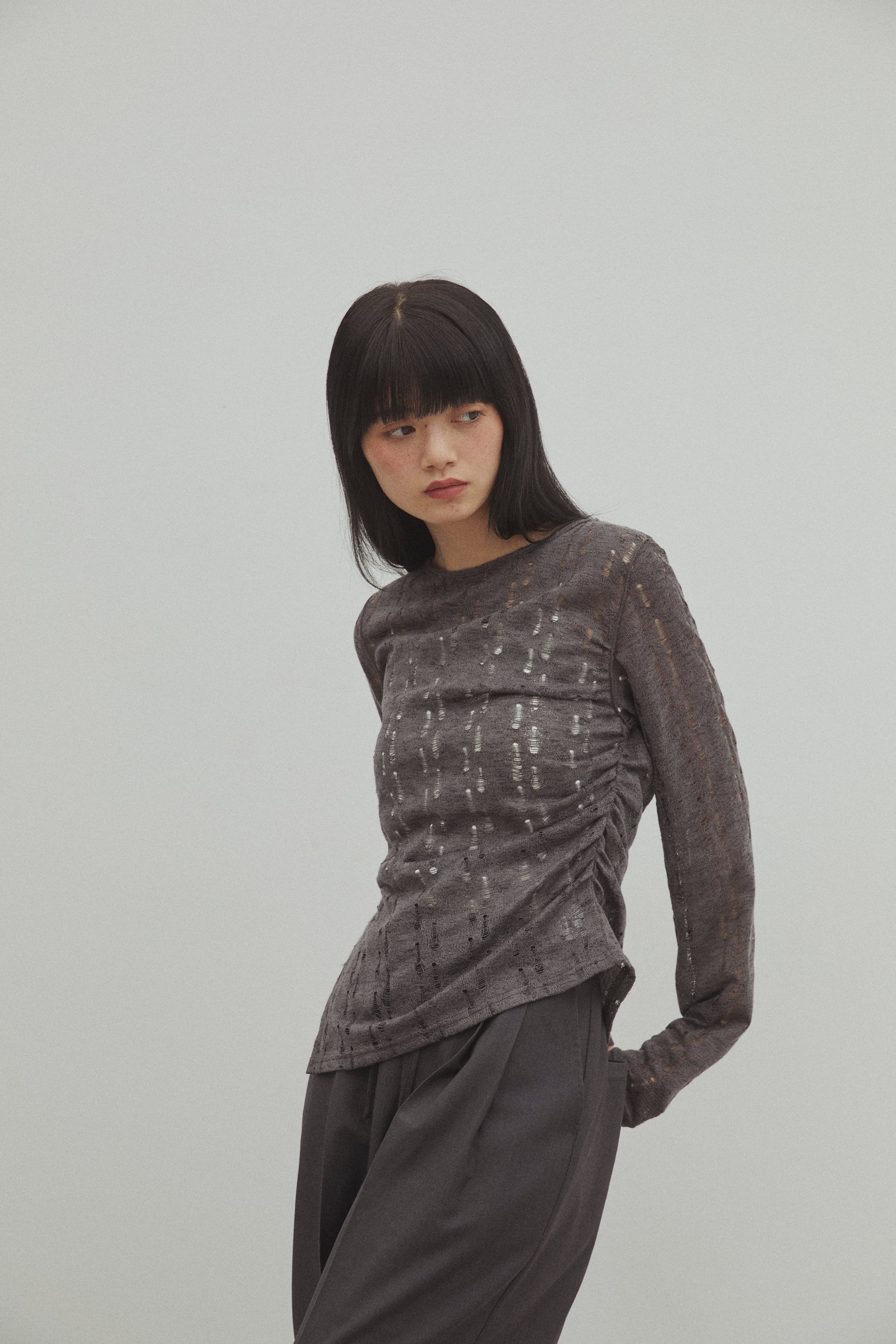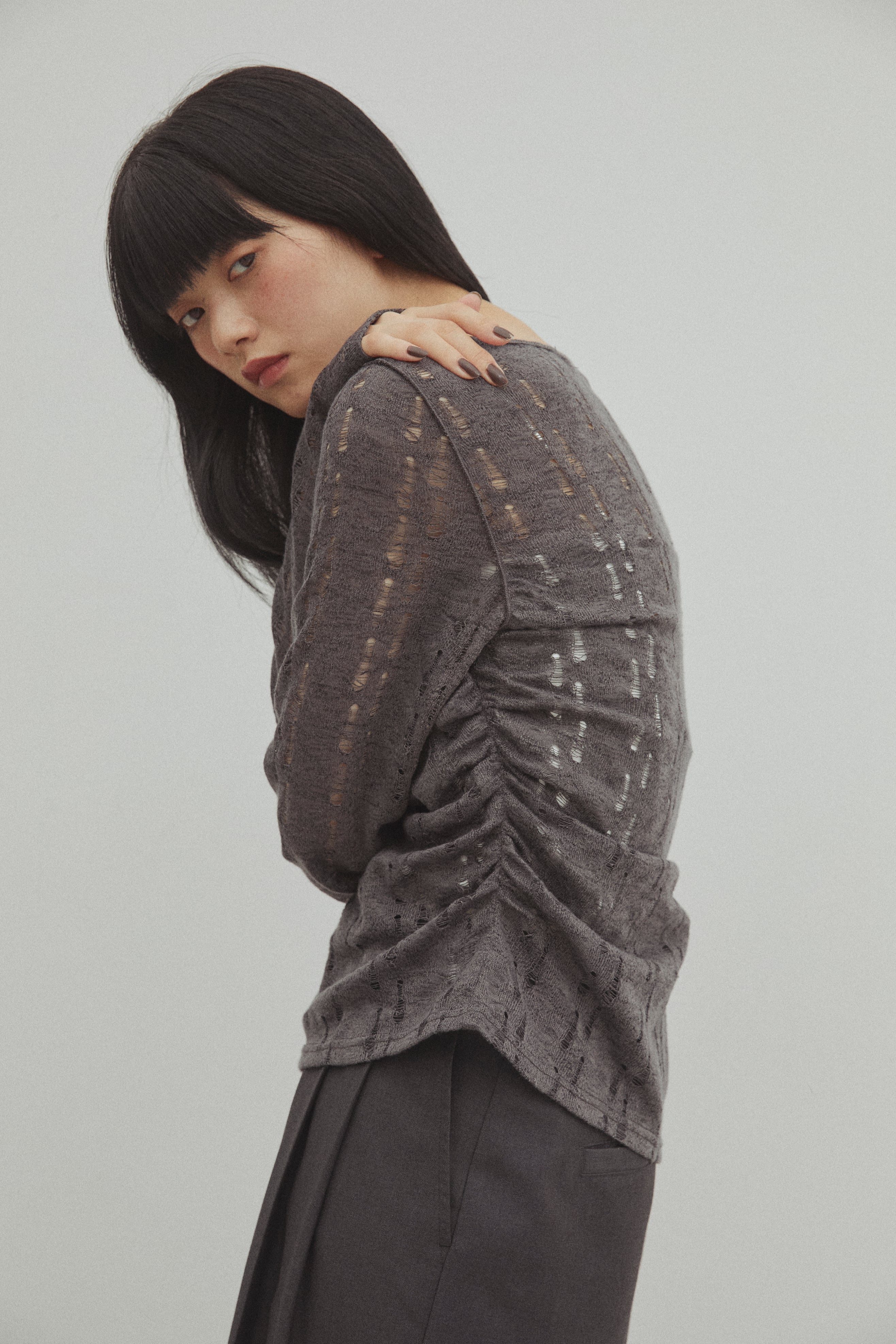 ニットライクな素材で季節感を演出しながら上品さも兼ね備えた一枚。