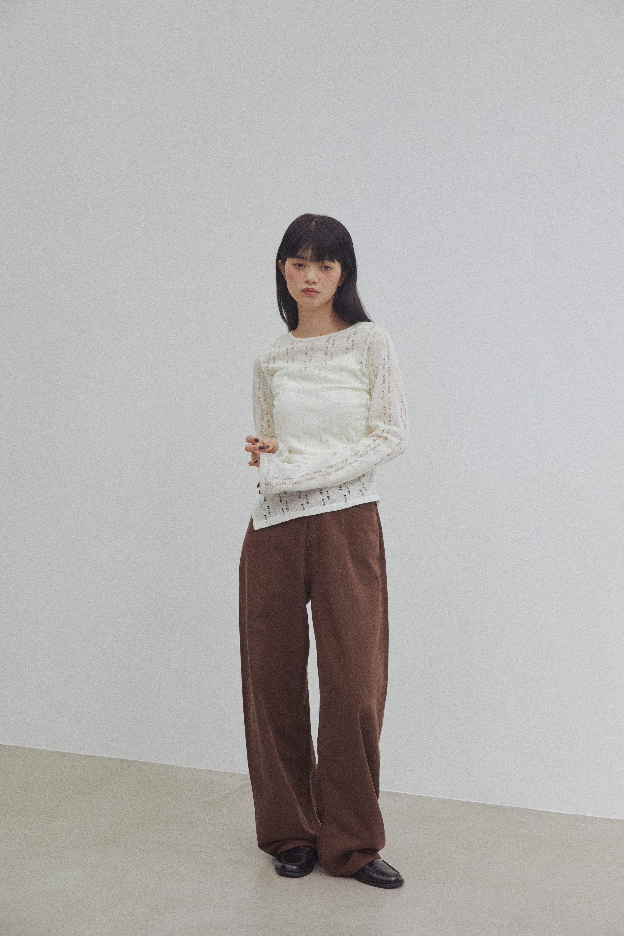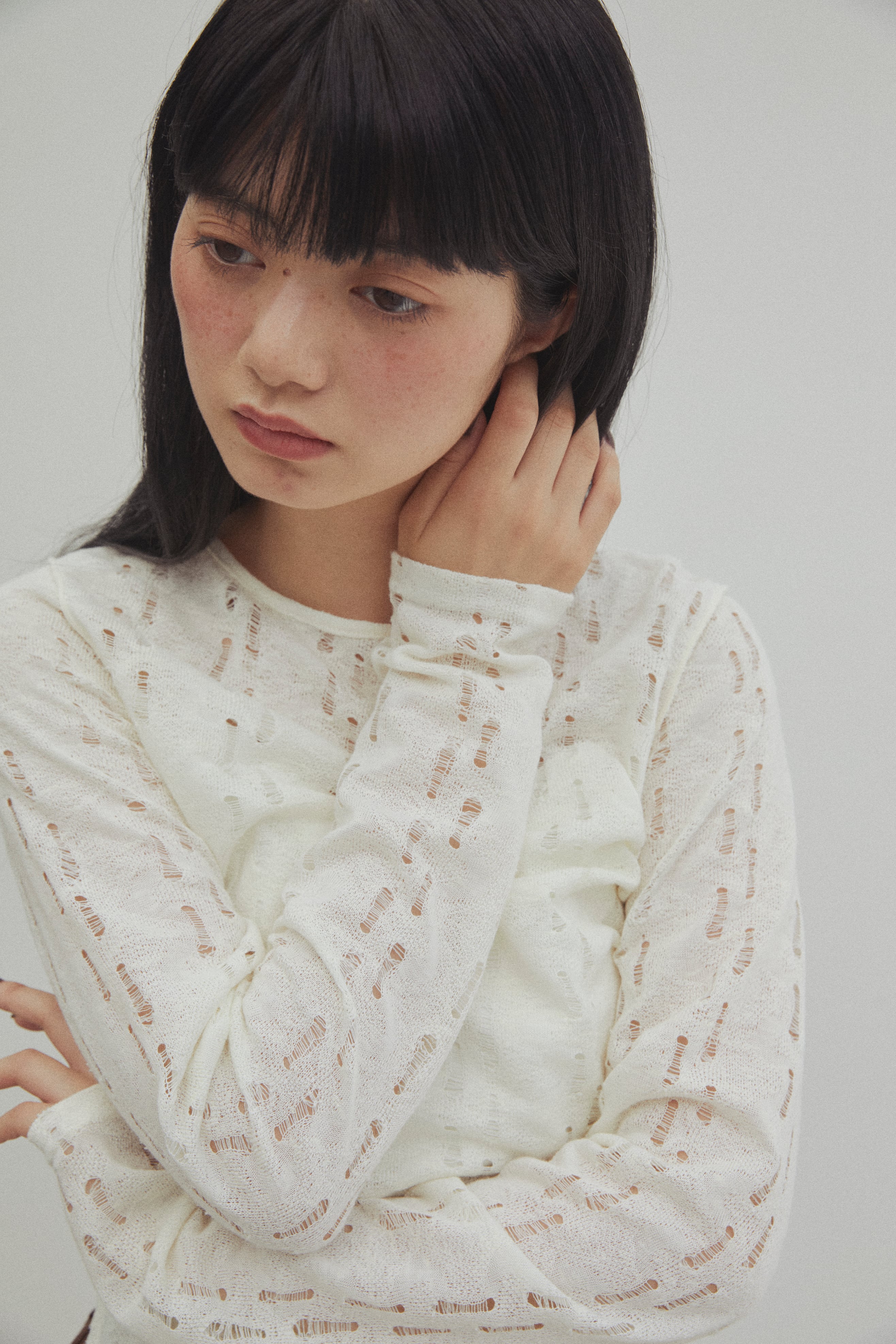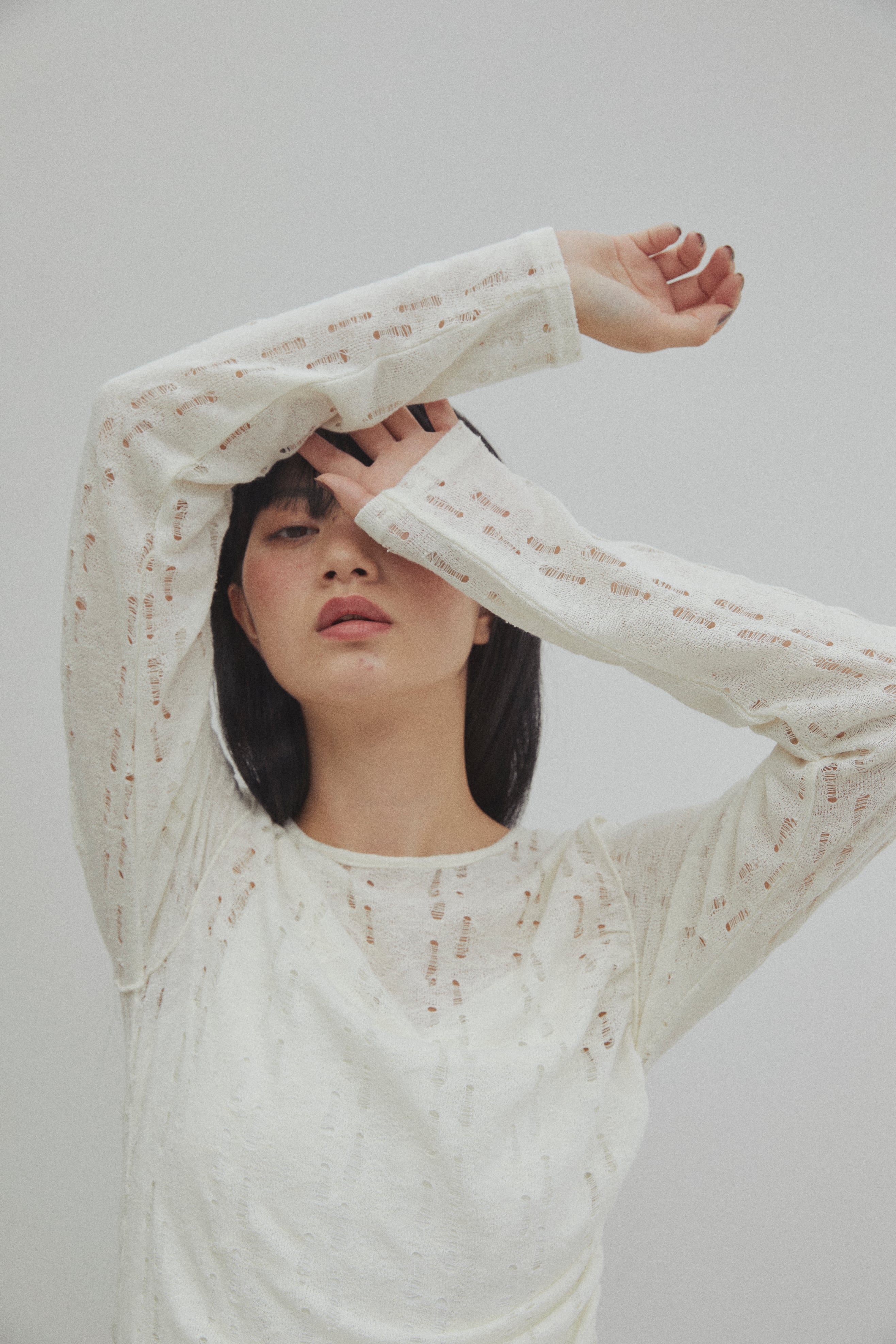 この製品は非常にデリケートな生地を使用しているため、強度な力や引っ掛かりで縫い目が開いたり、目寄れする性質があります。着用・着脱時や洗濯時等には他の物との引っかかりにご注意ください。