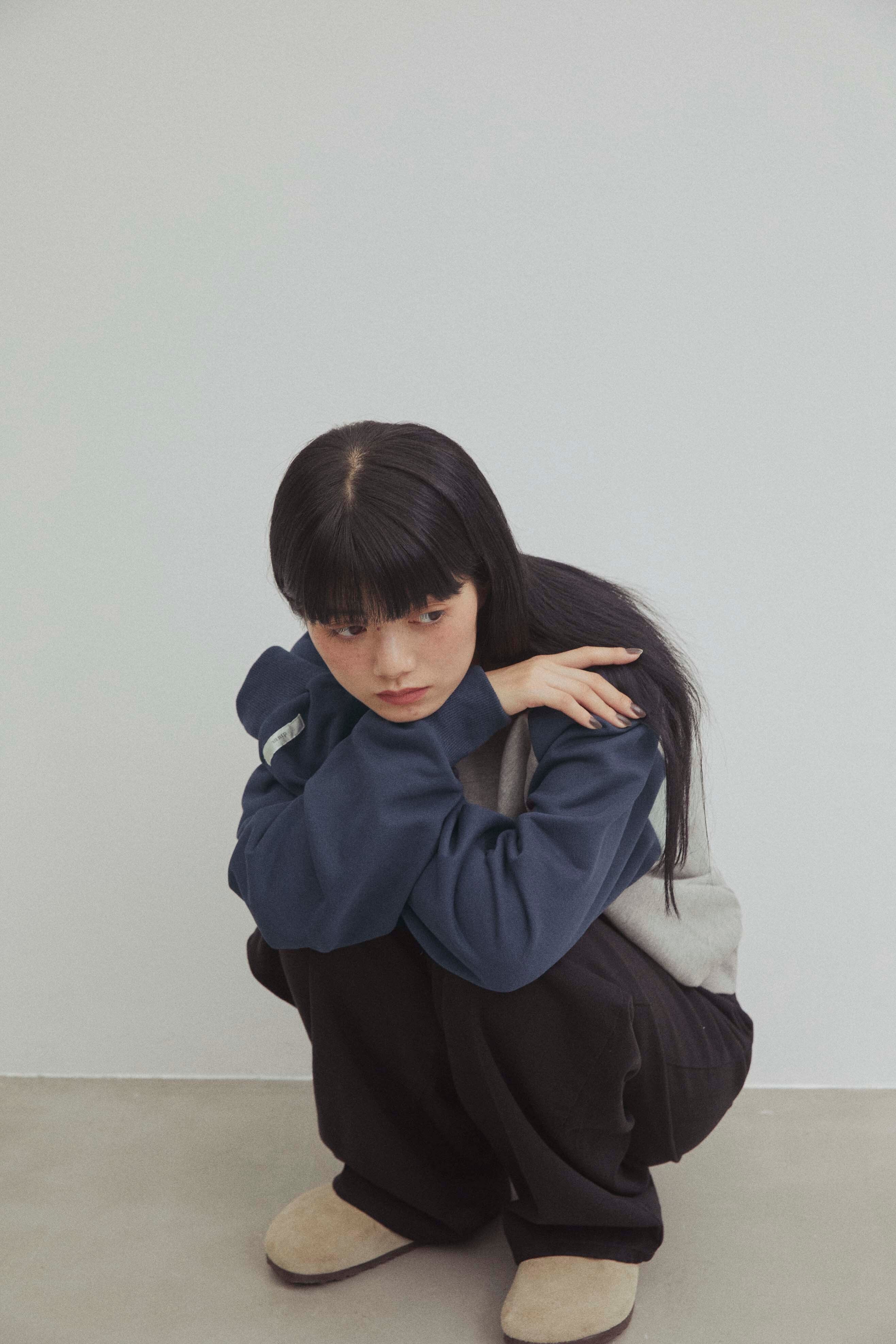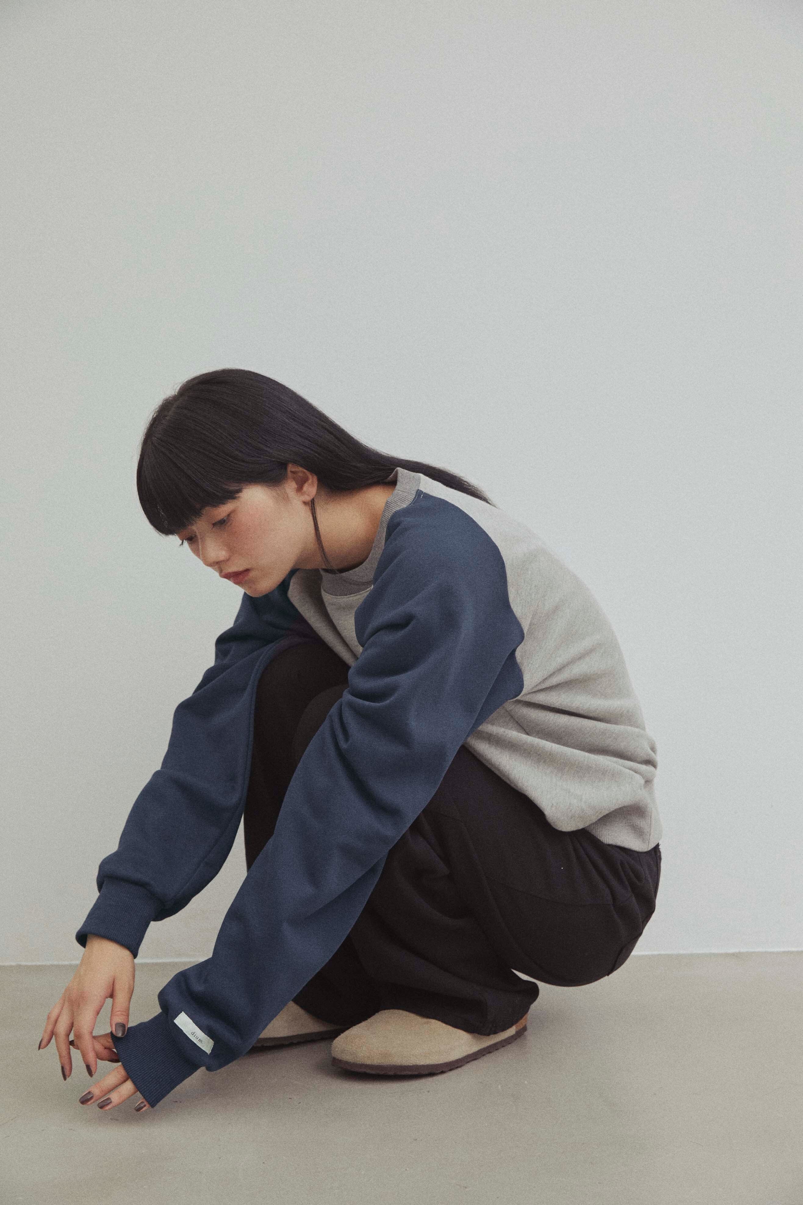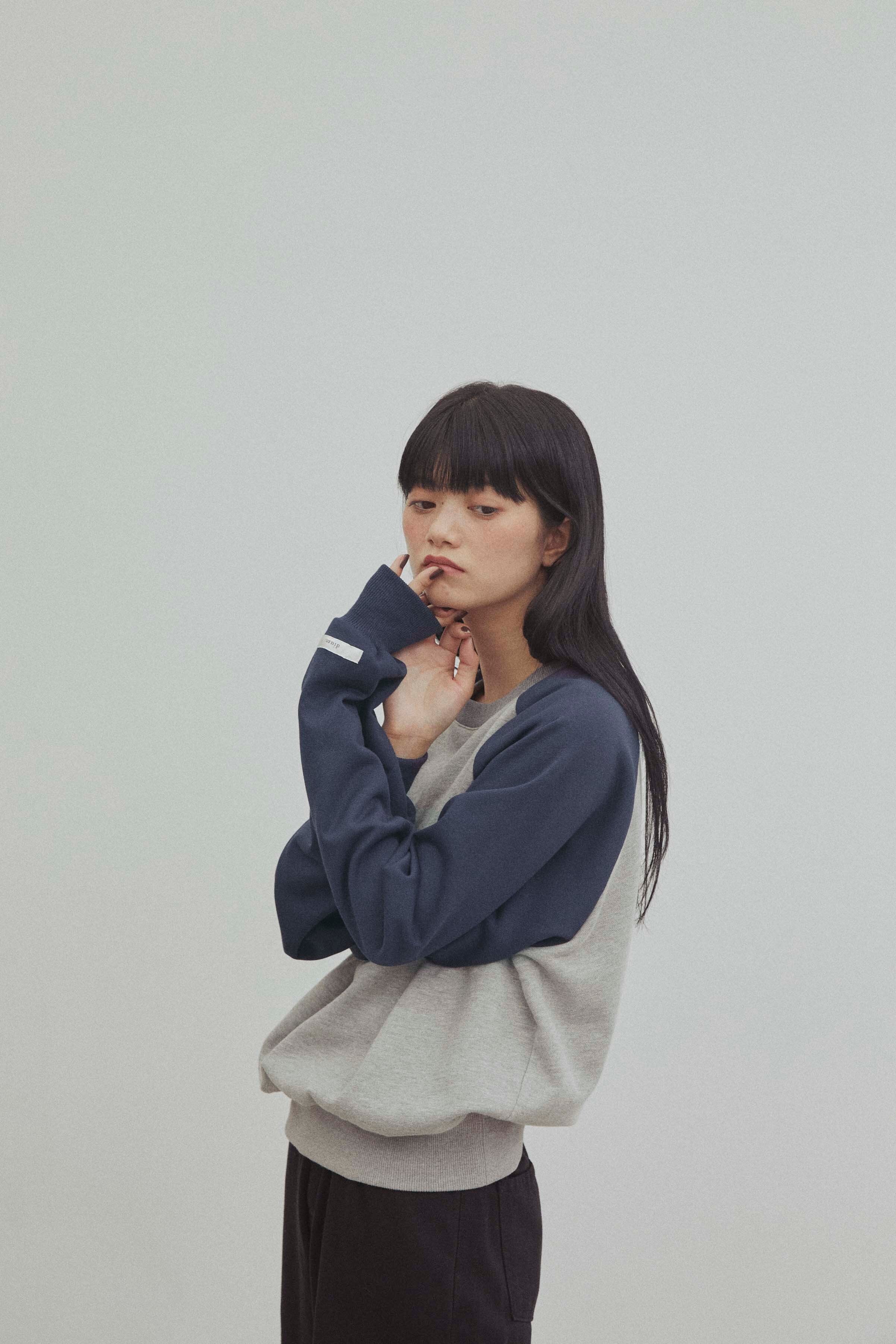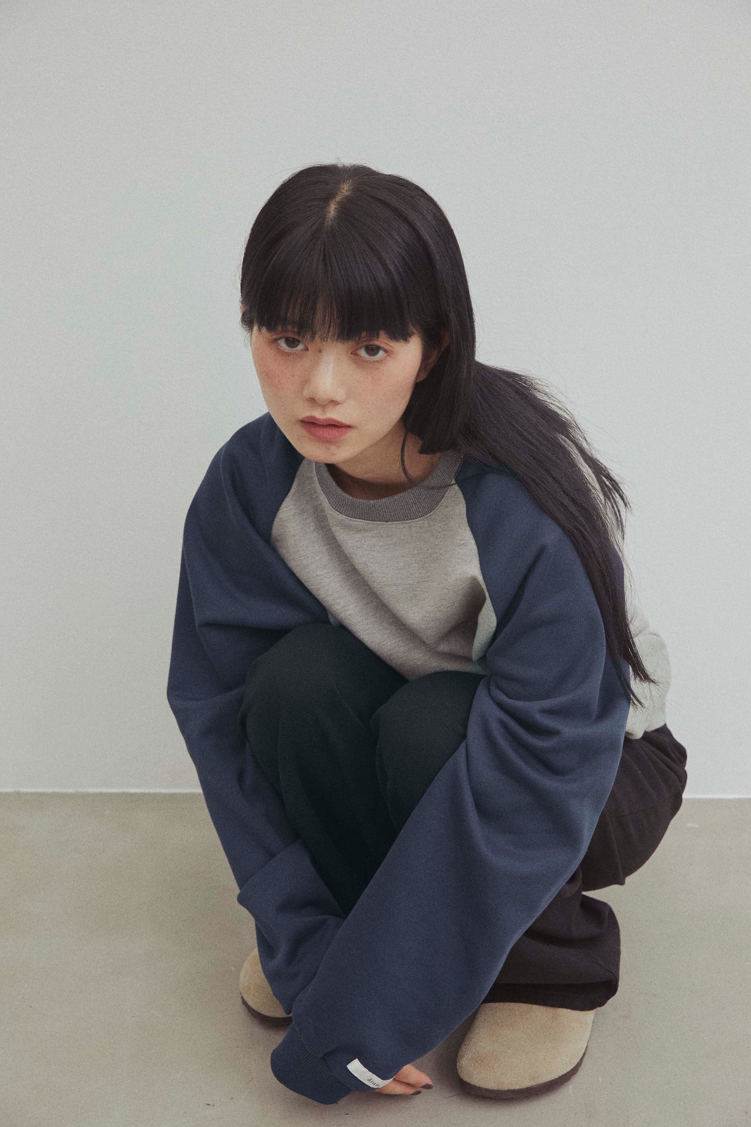 ゆるっとしたシルエットな、韓国ムード漂うバイカラースウェット。