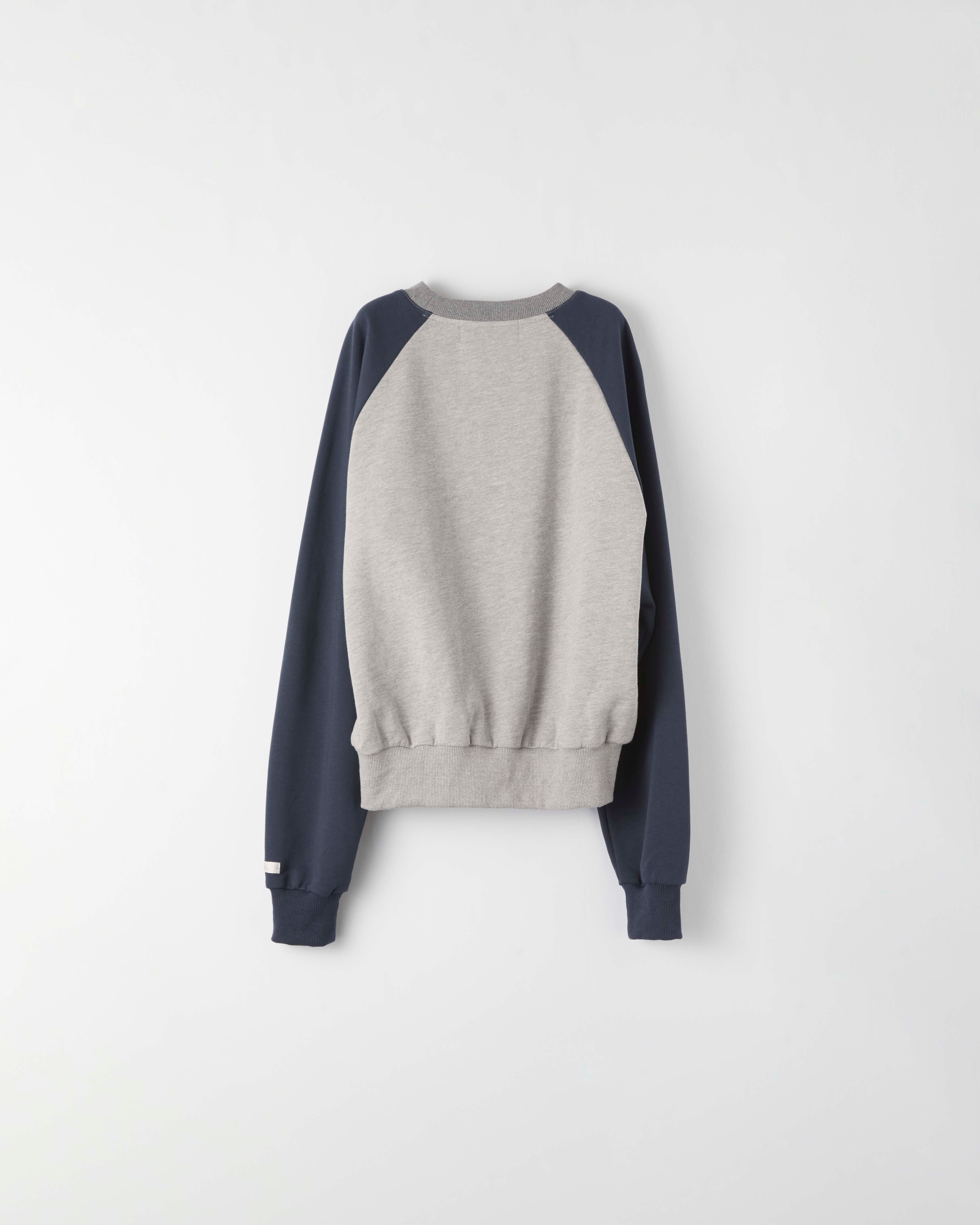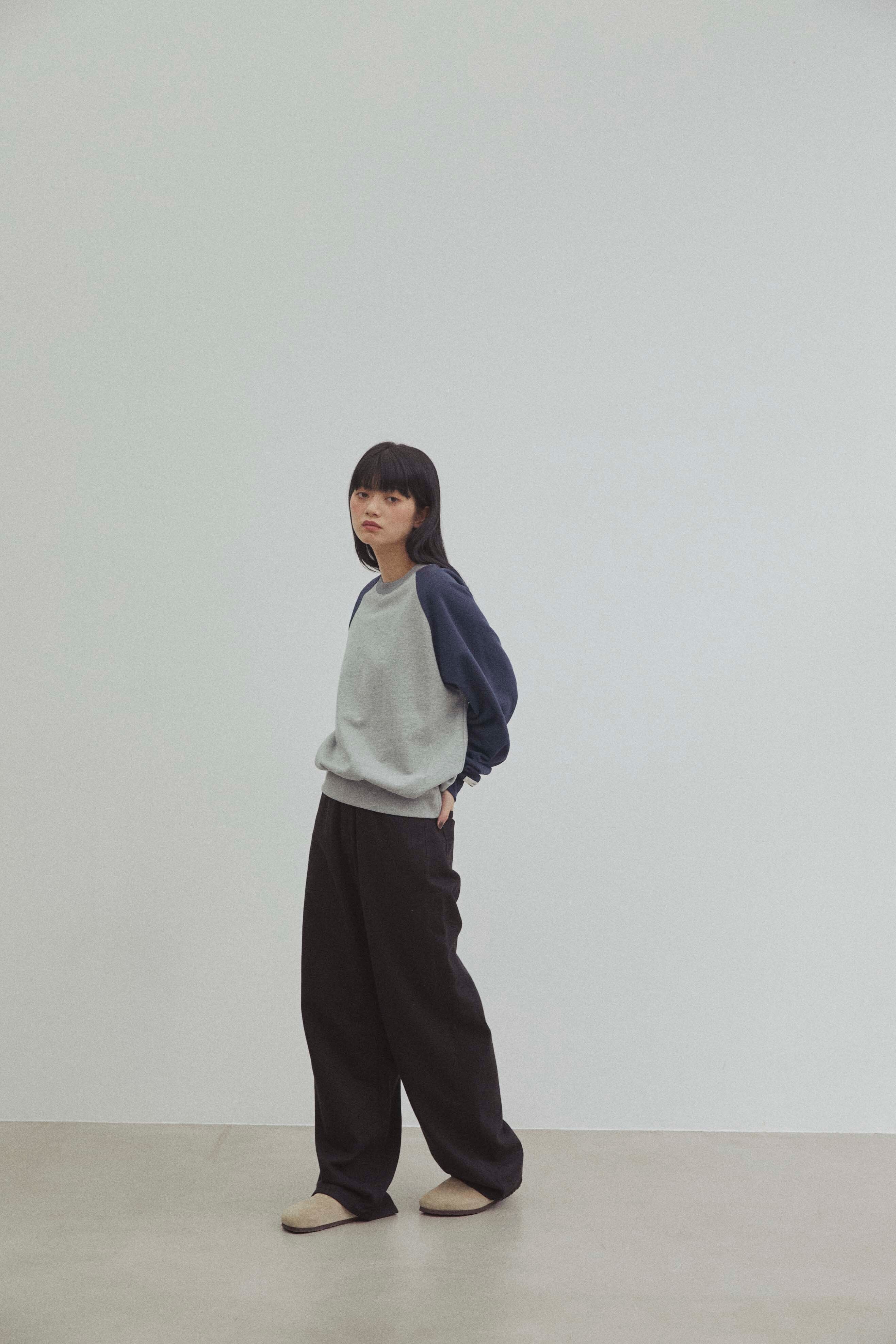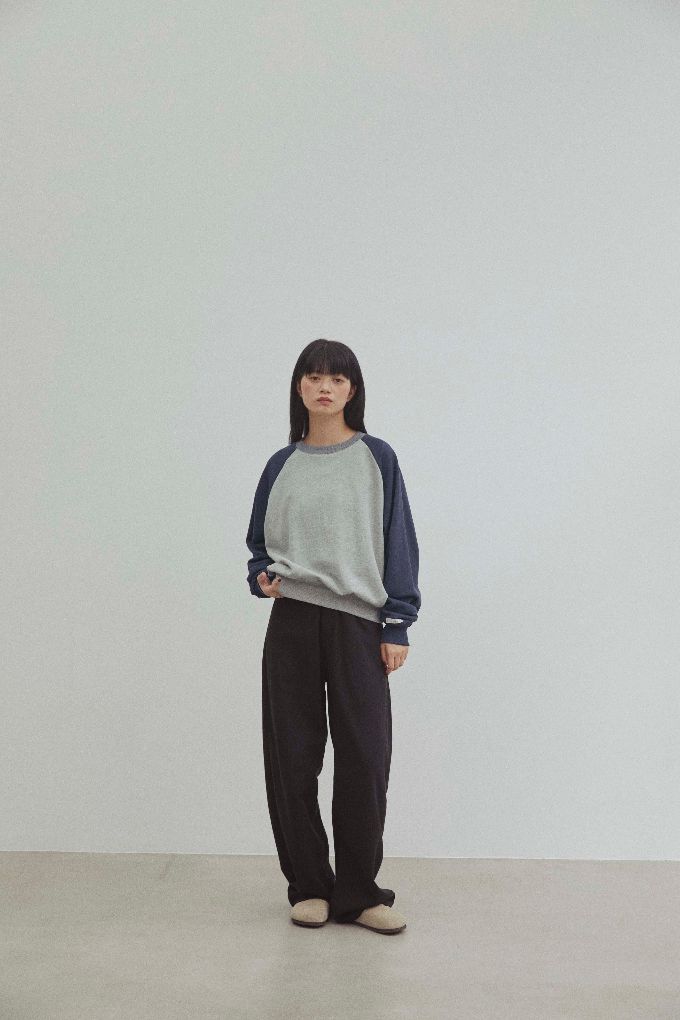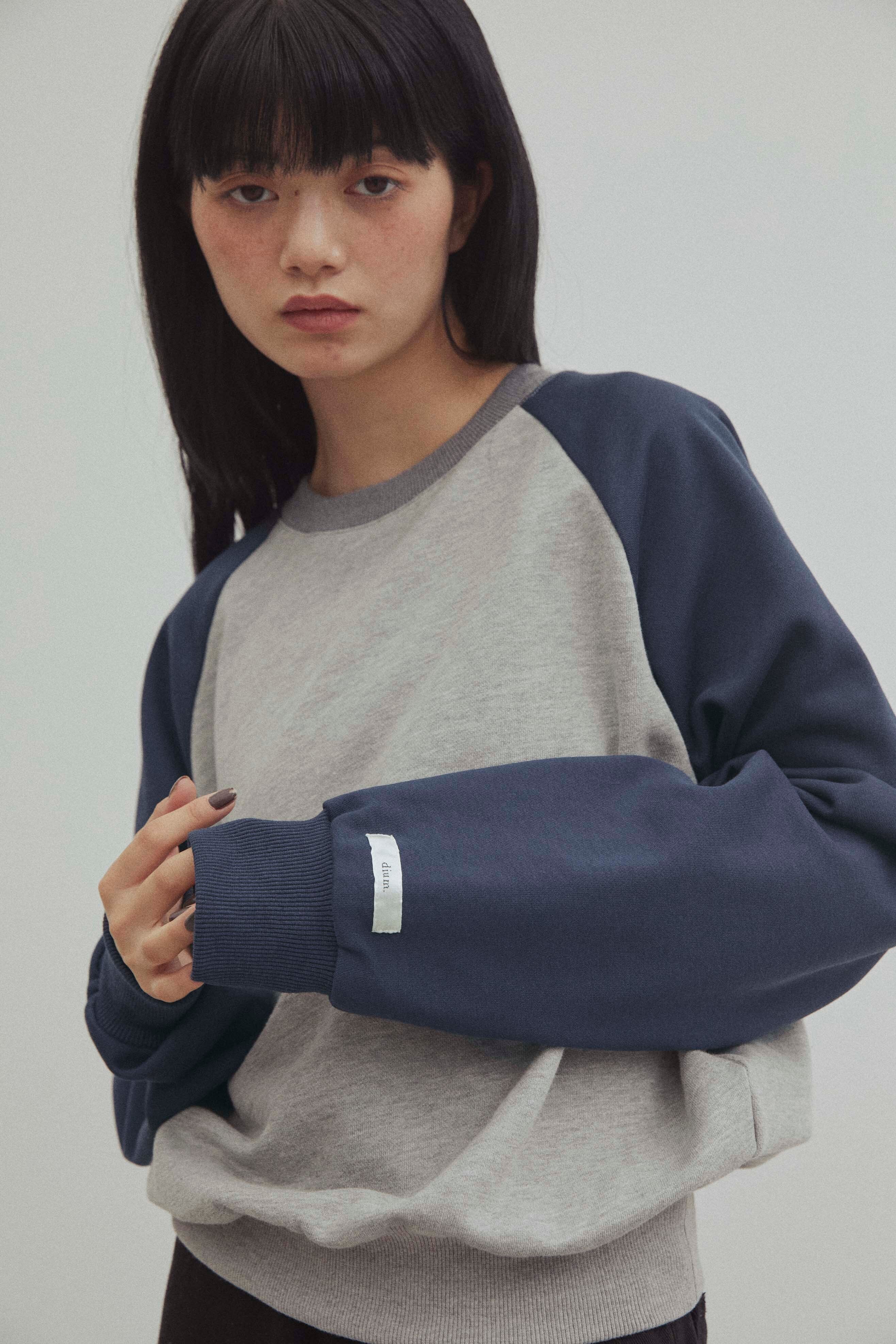 ゆるっとしたシルエットな、韓国ムード漂うバイカラースウェット。