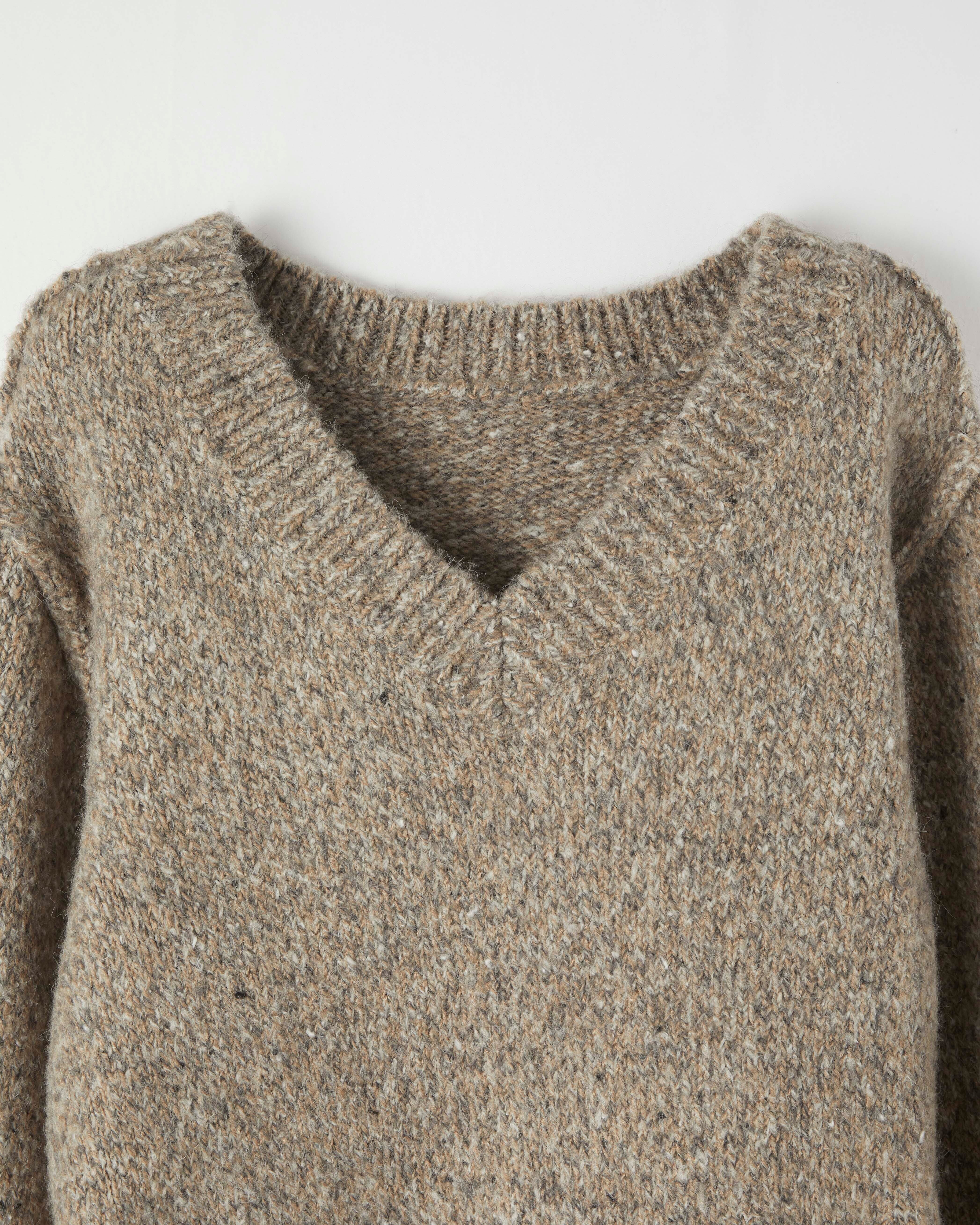 柔らかな糸で編み立てた、Vネックニットプルオーバー。