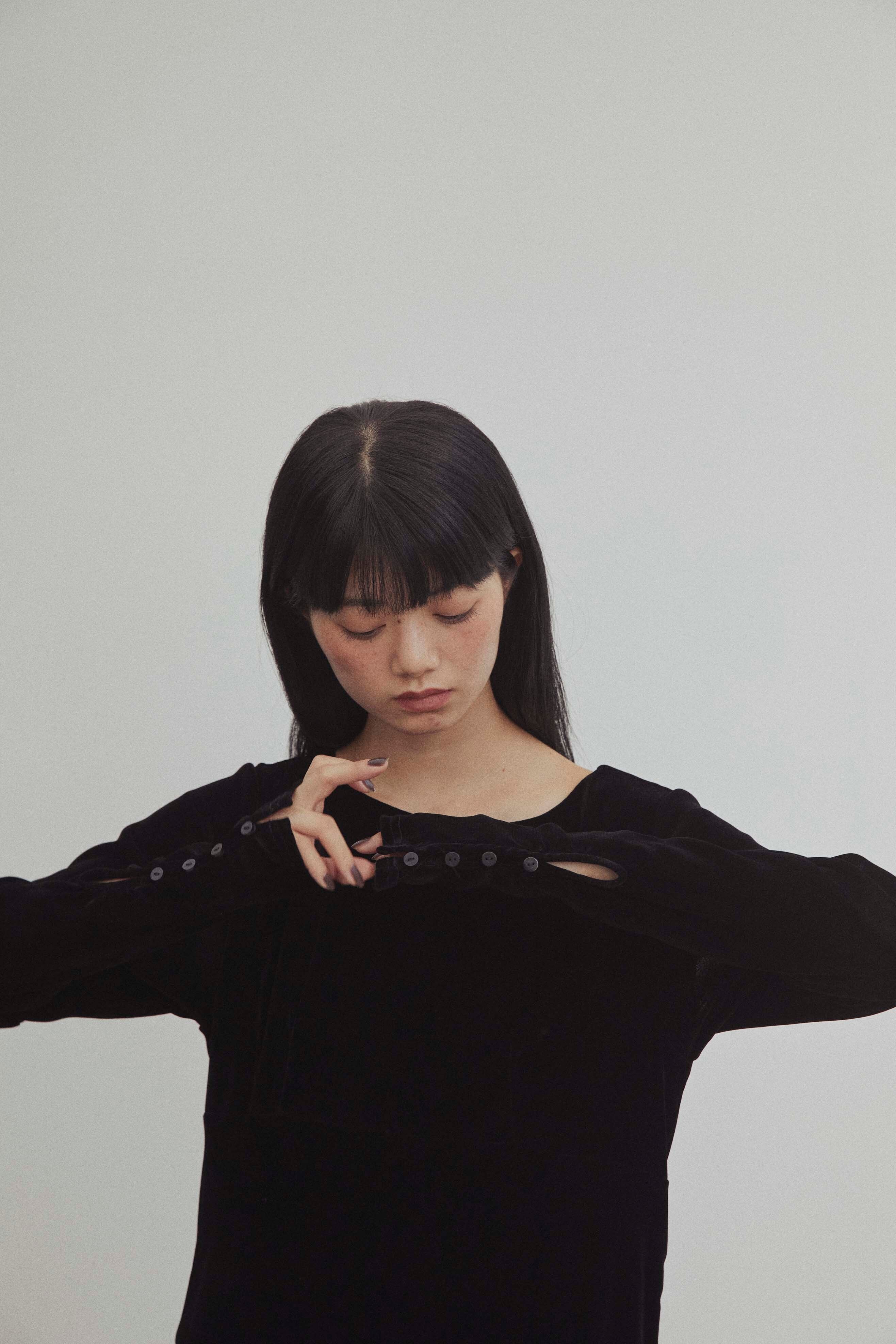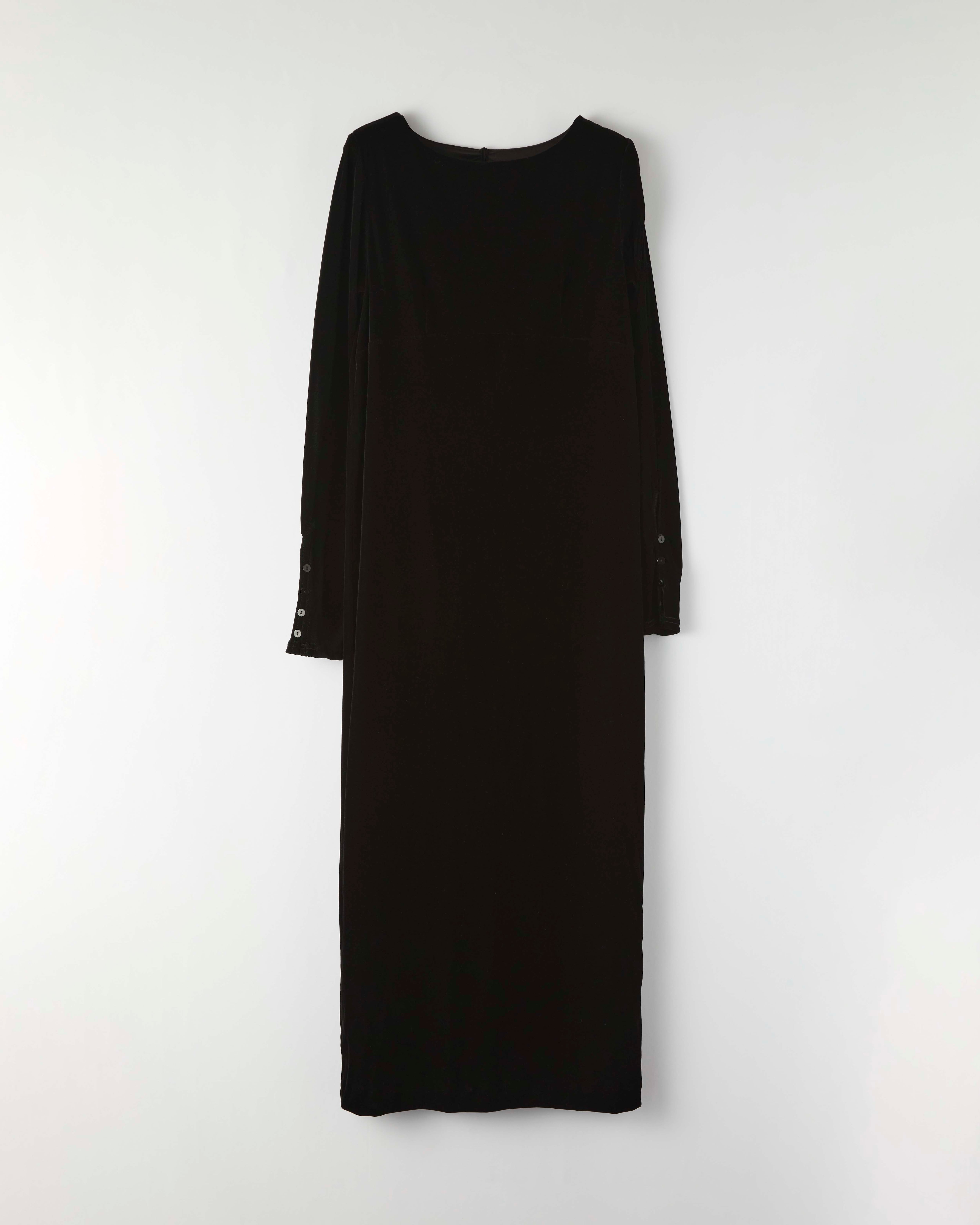ベロア素材が、静かな存在感を放つロングワンピース。
