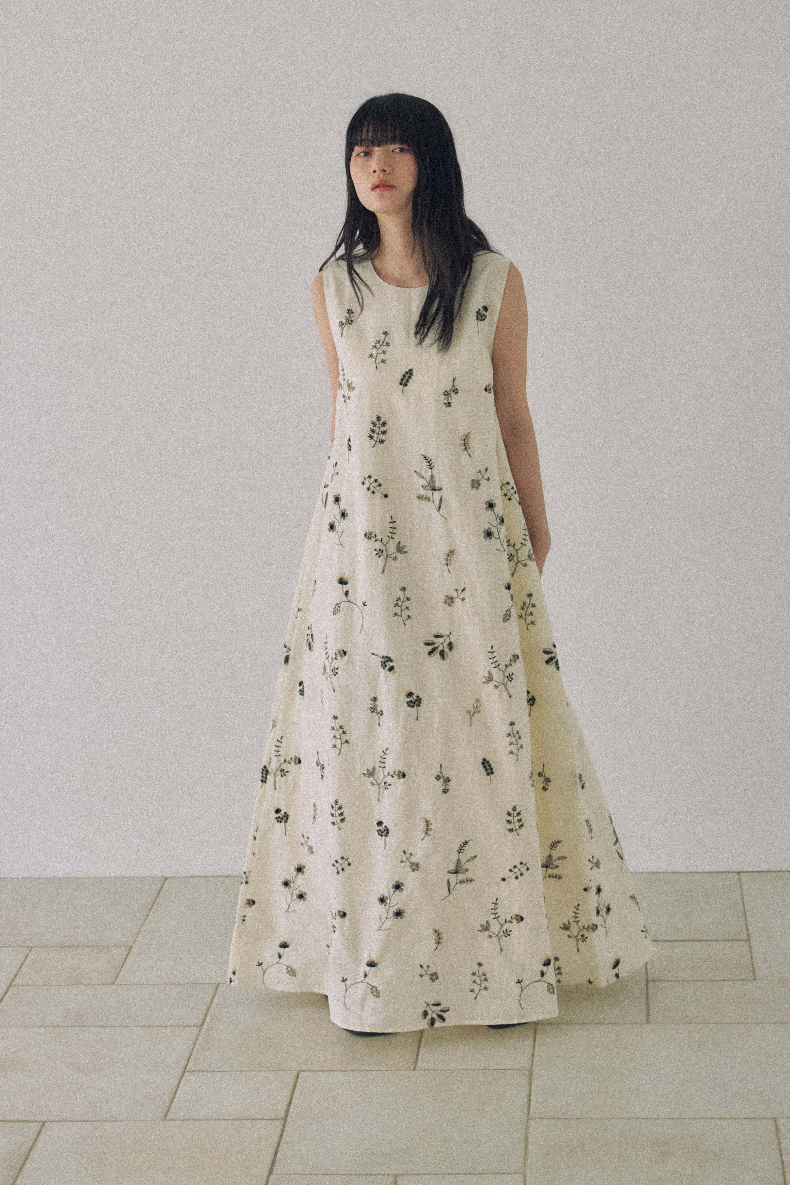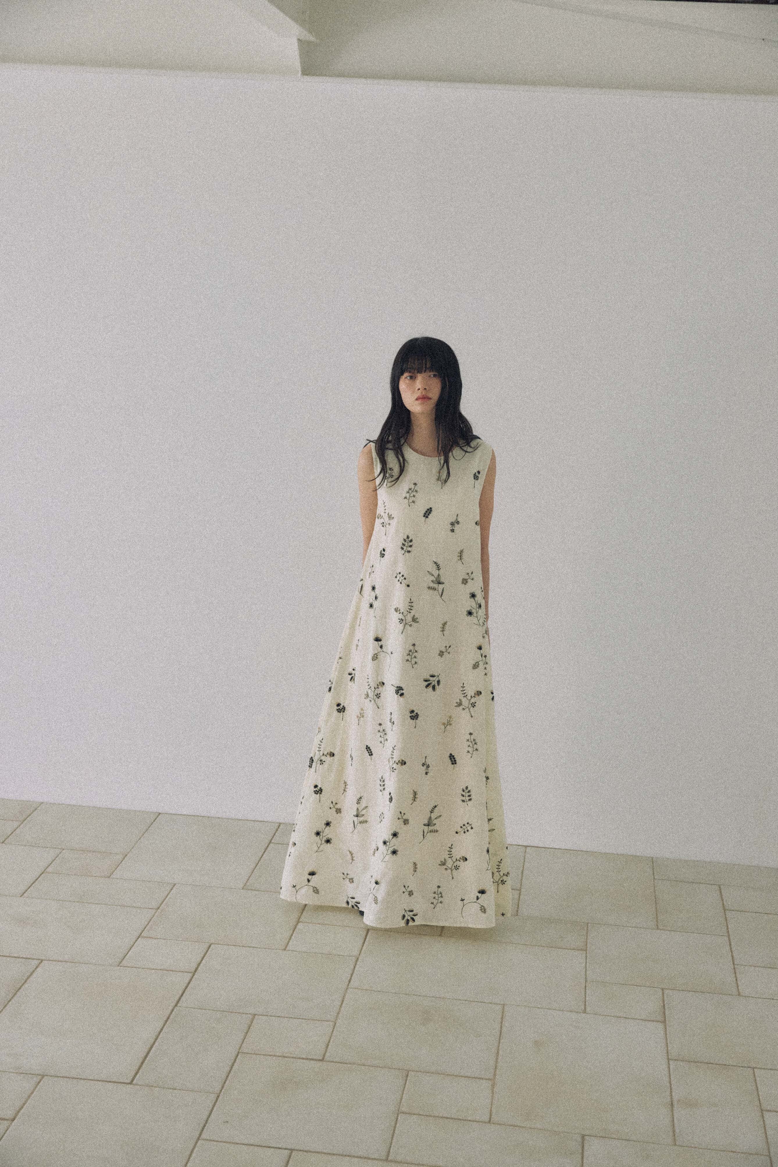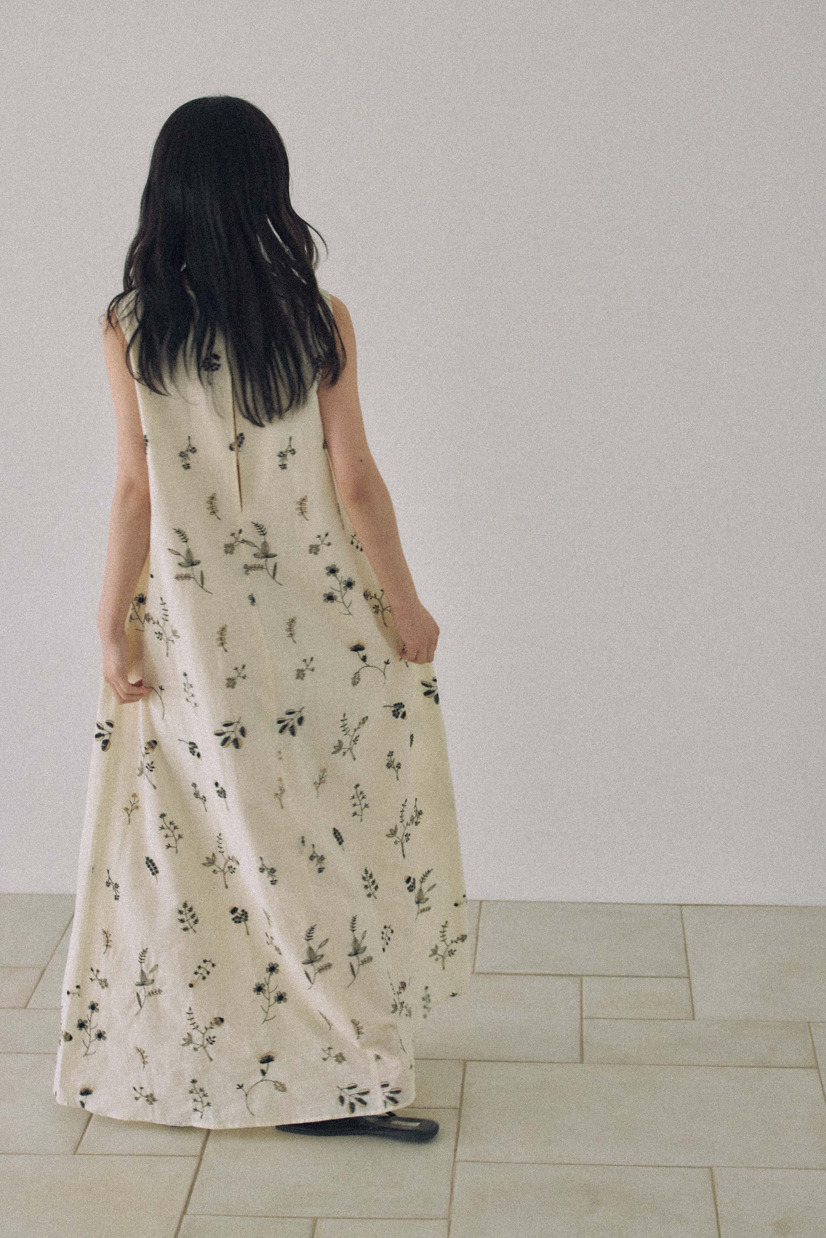繊細な刺繍を散りばめた、ナチュラルなロングワンピース。