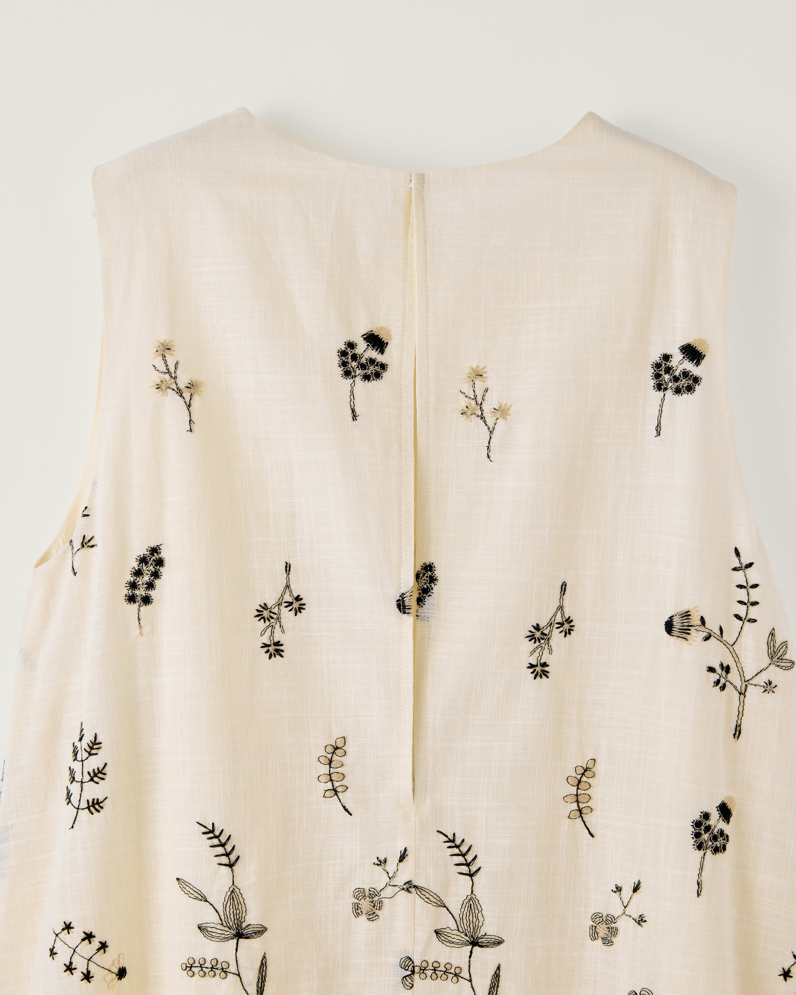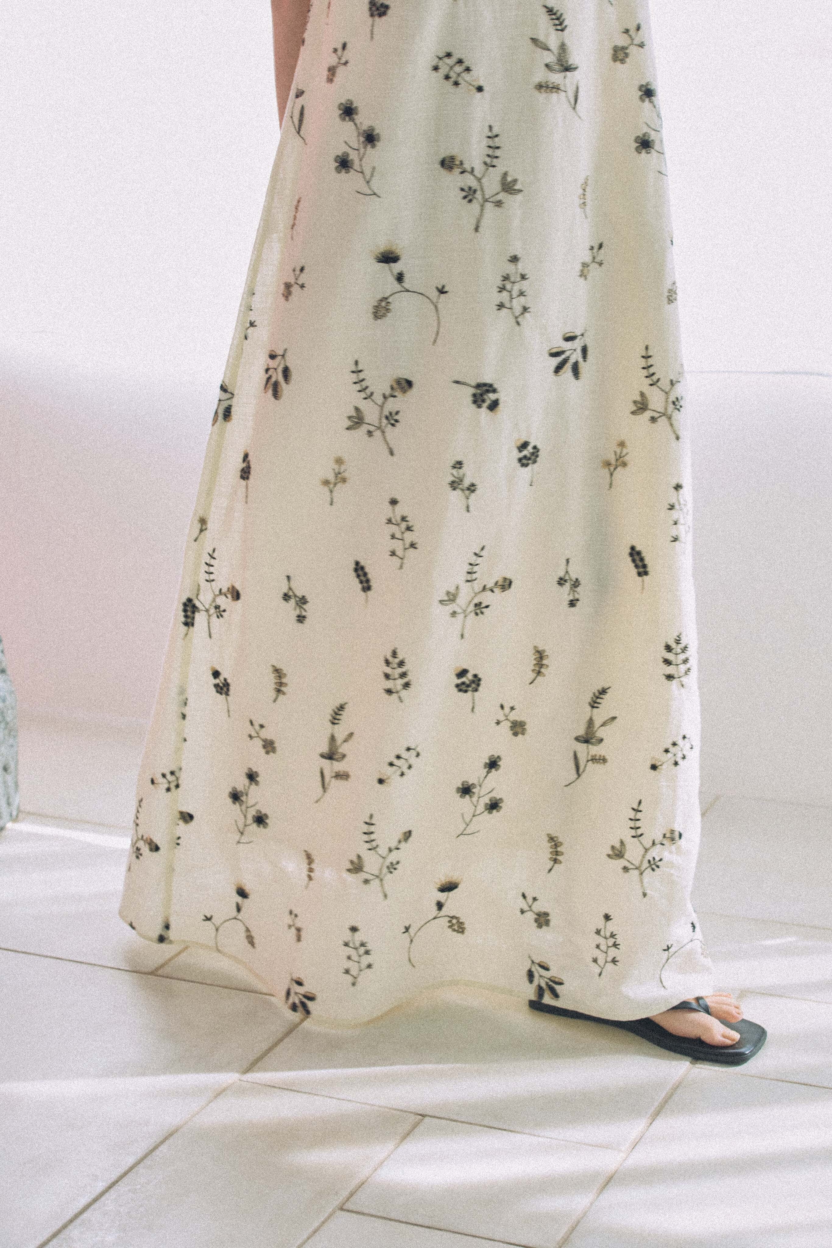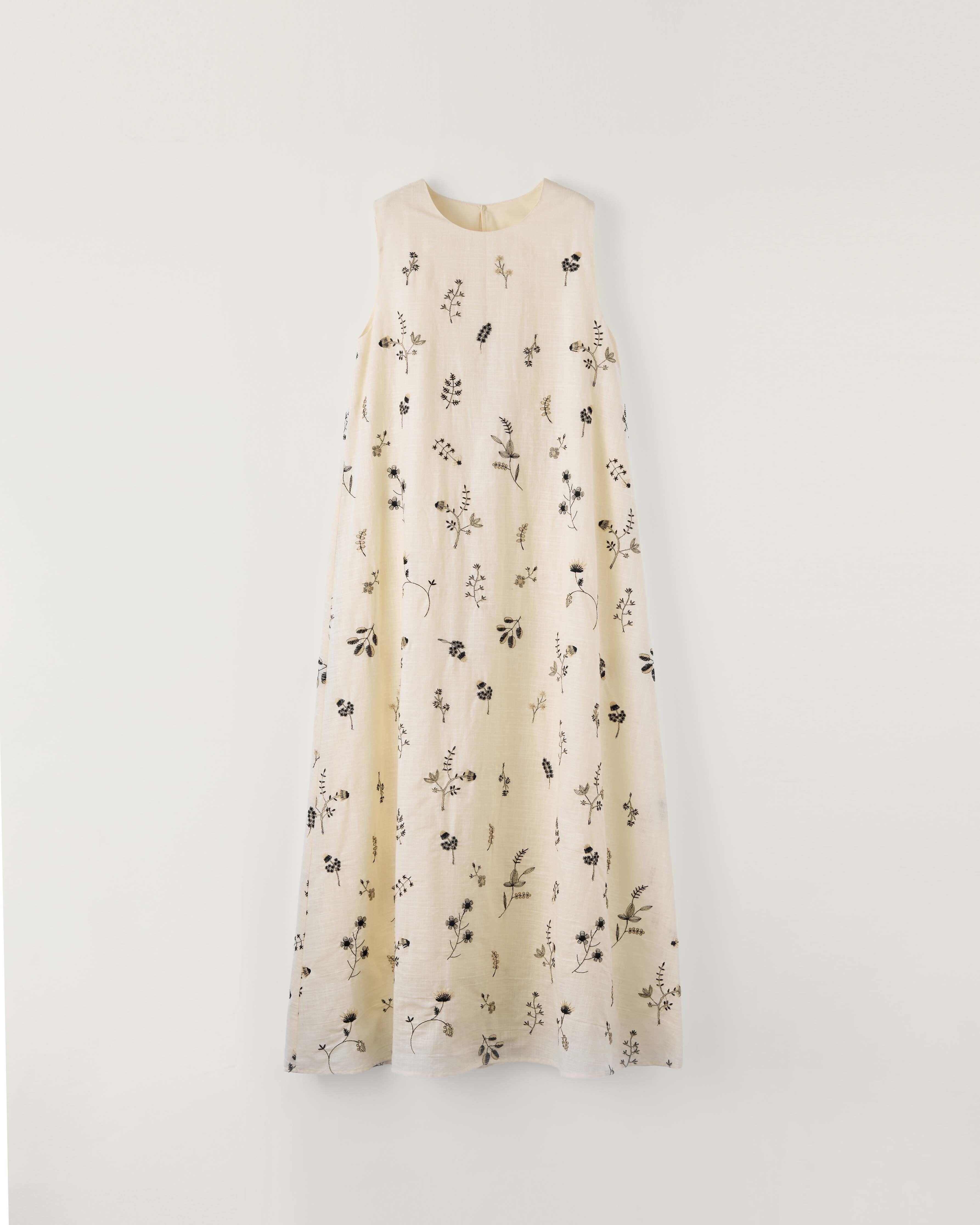 繊細な刺繍を散りばめた、ナチュラルなロングワンピース。