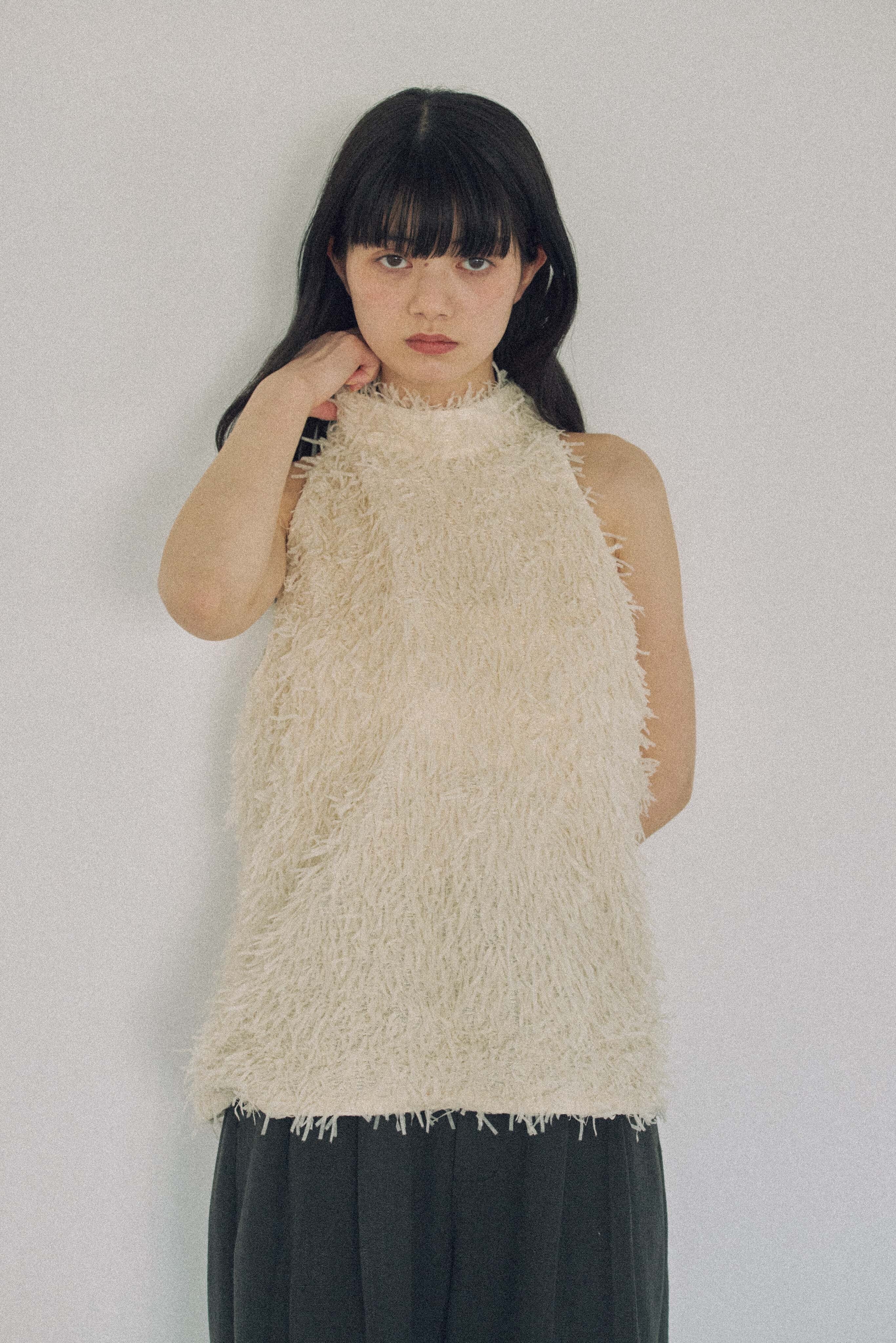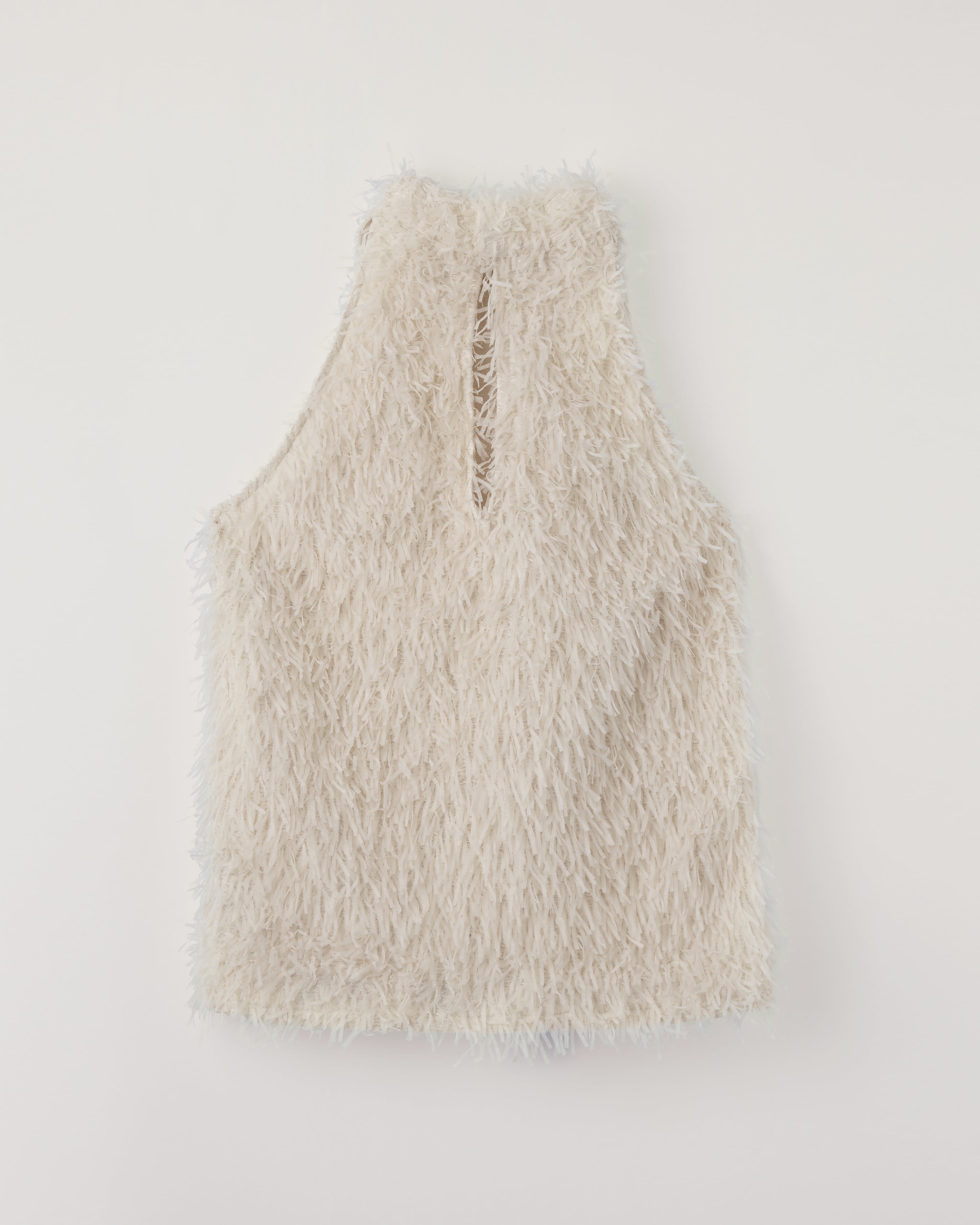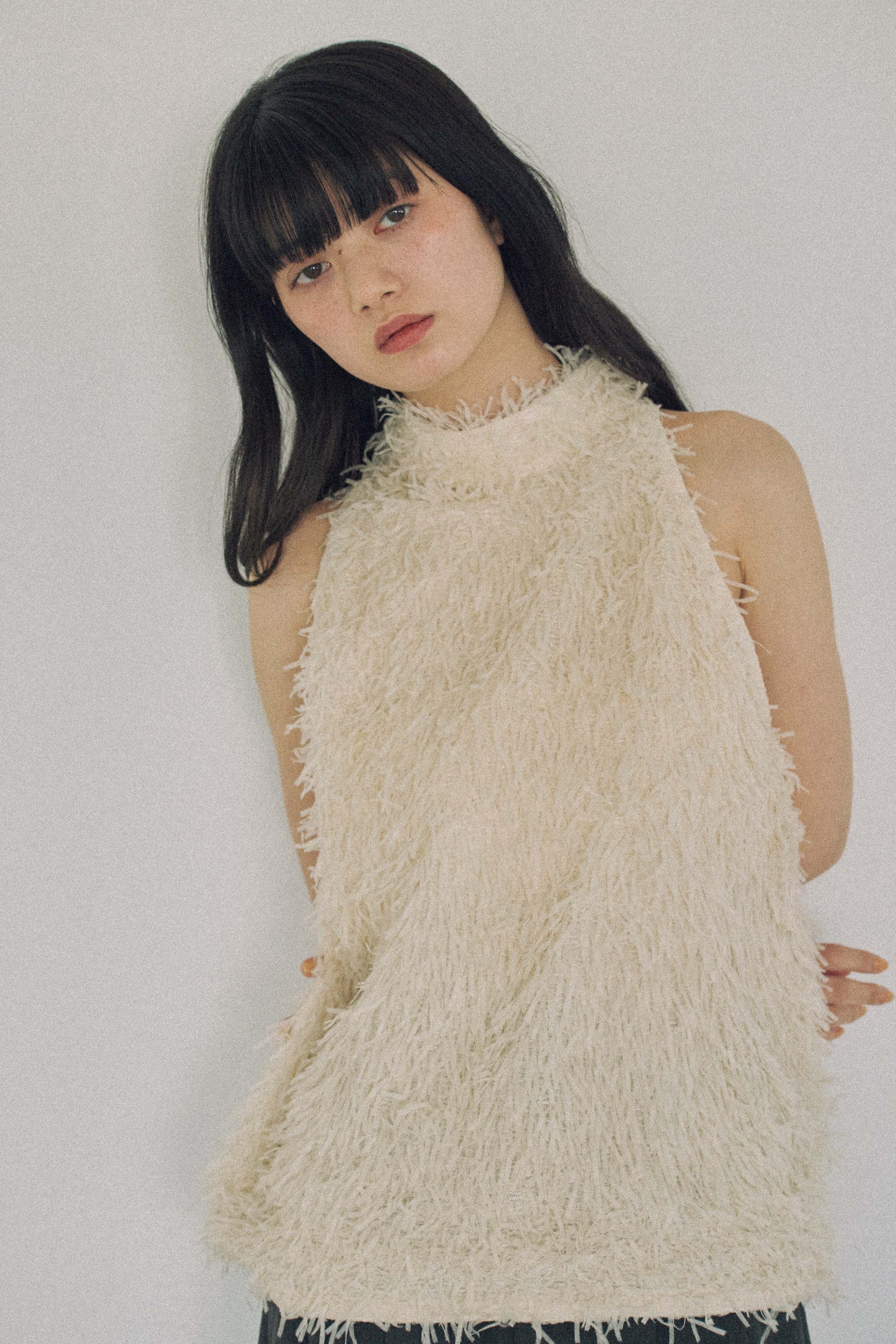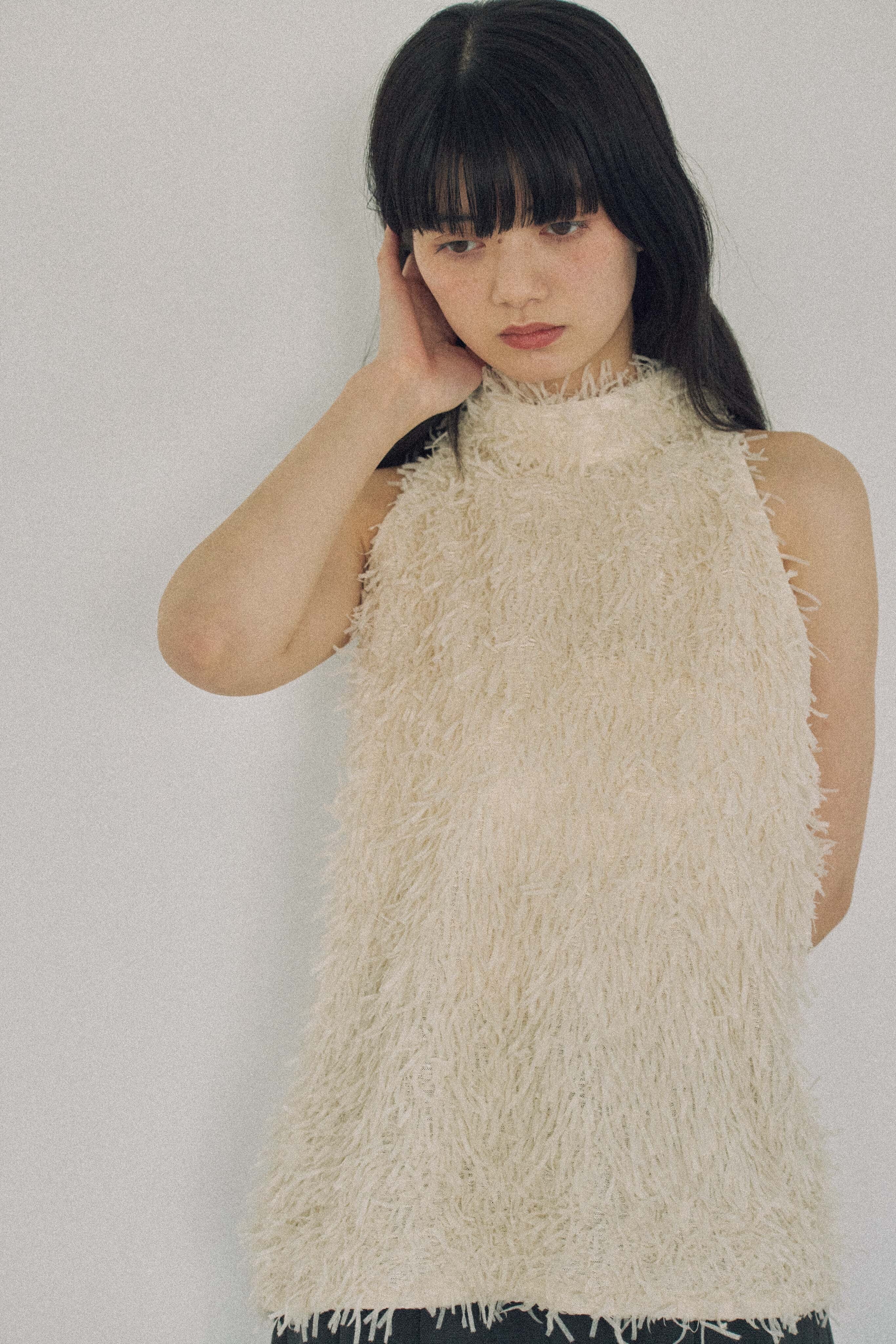 存在感のあるシャギー素材が目を引アメリカンスリーブトップス。