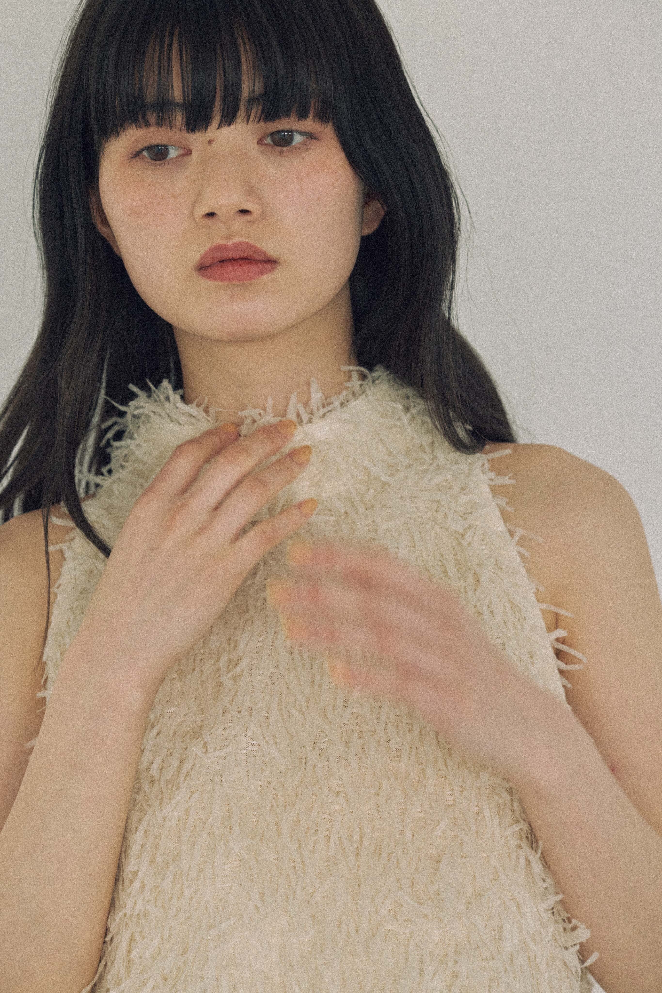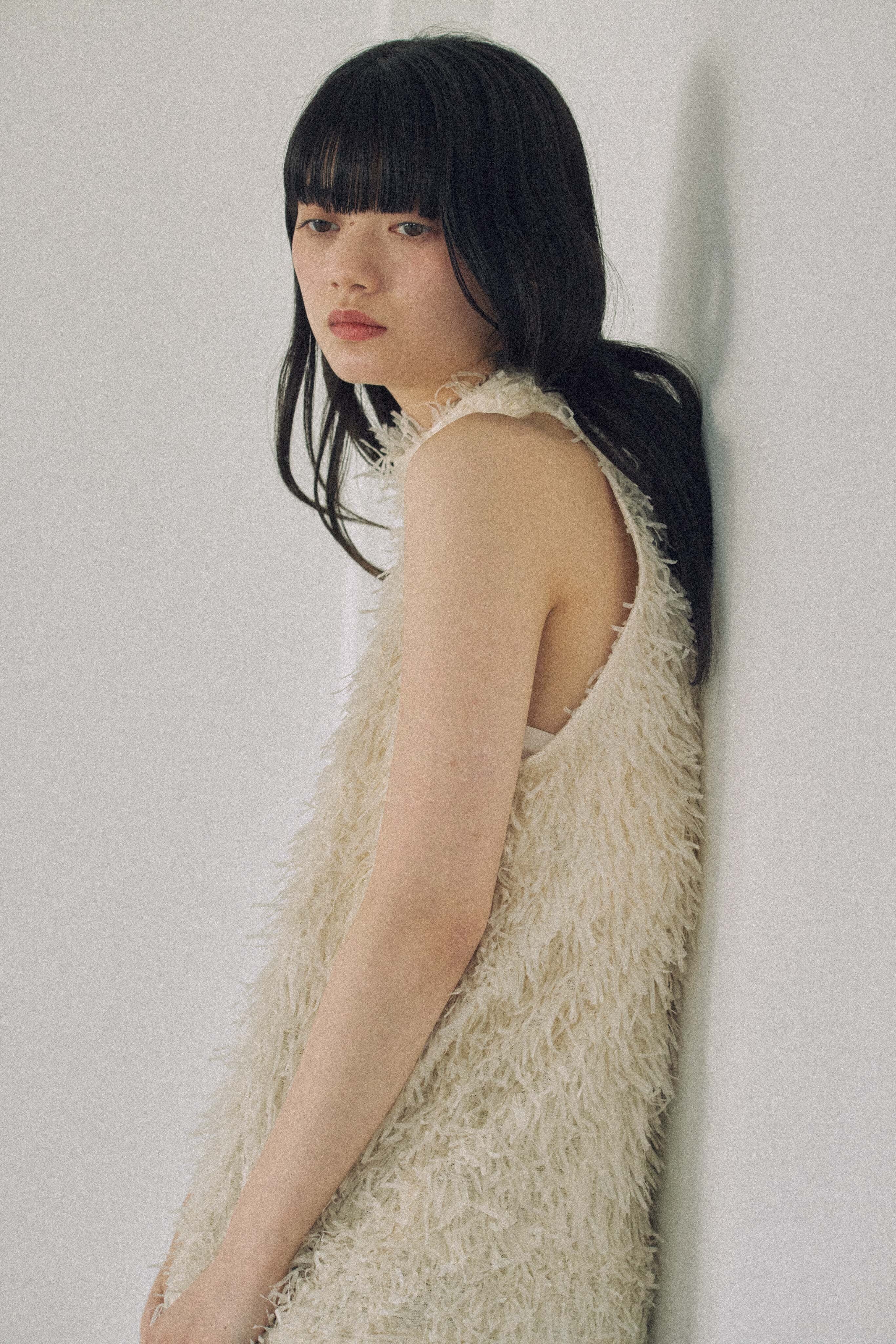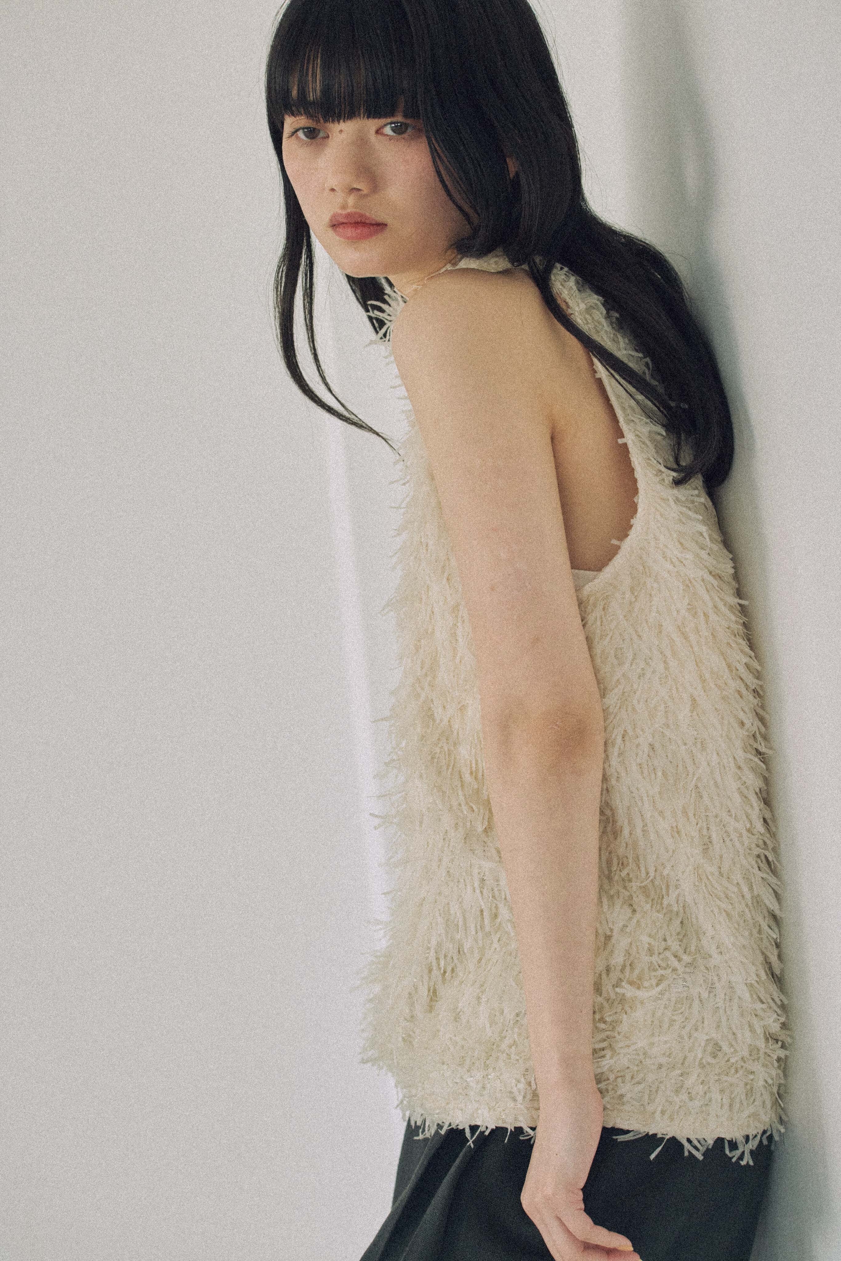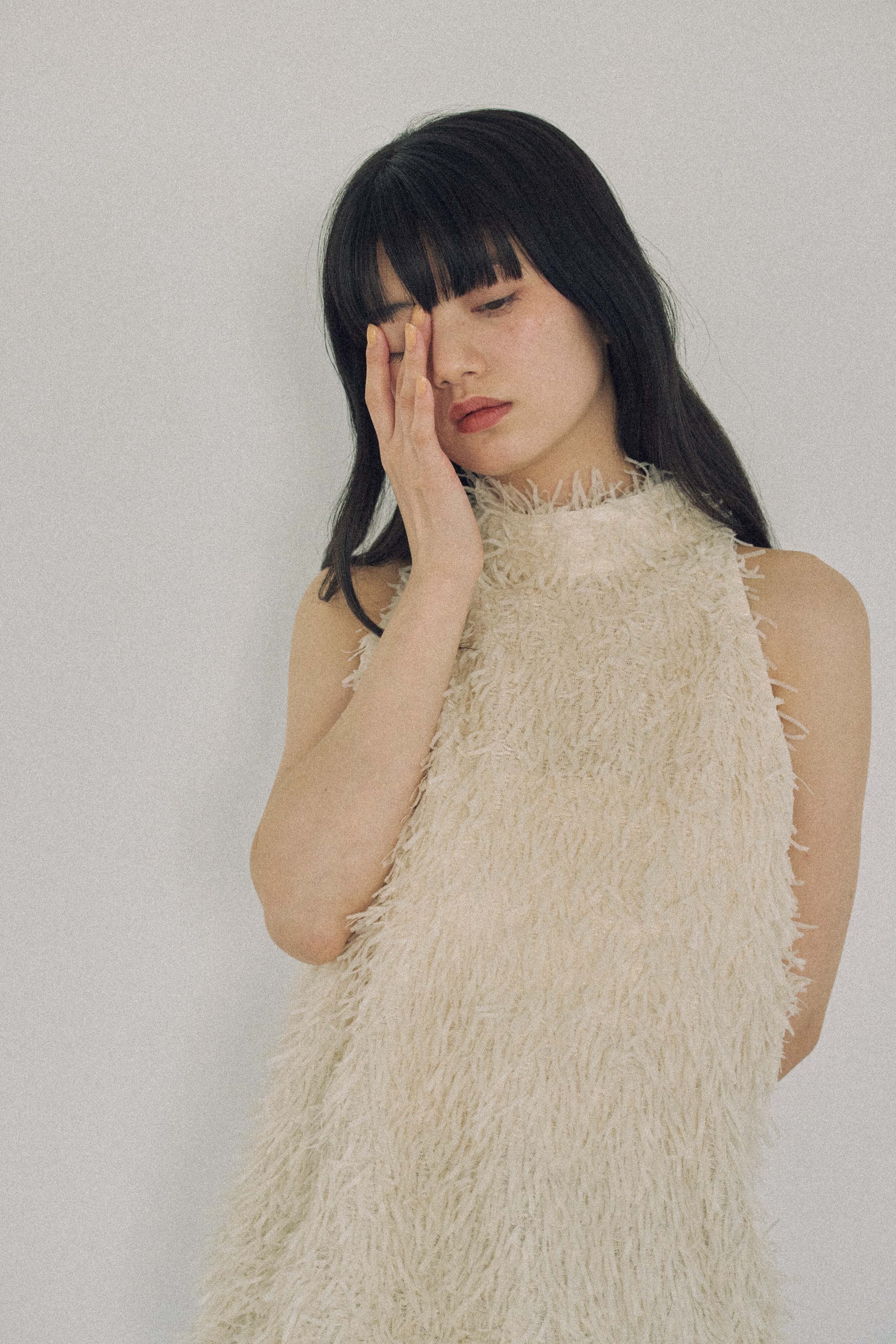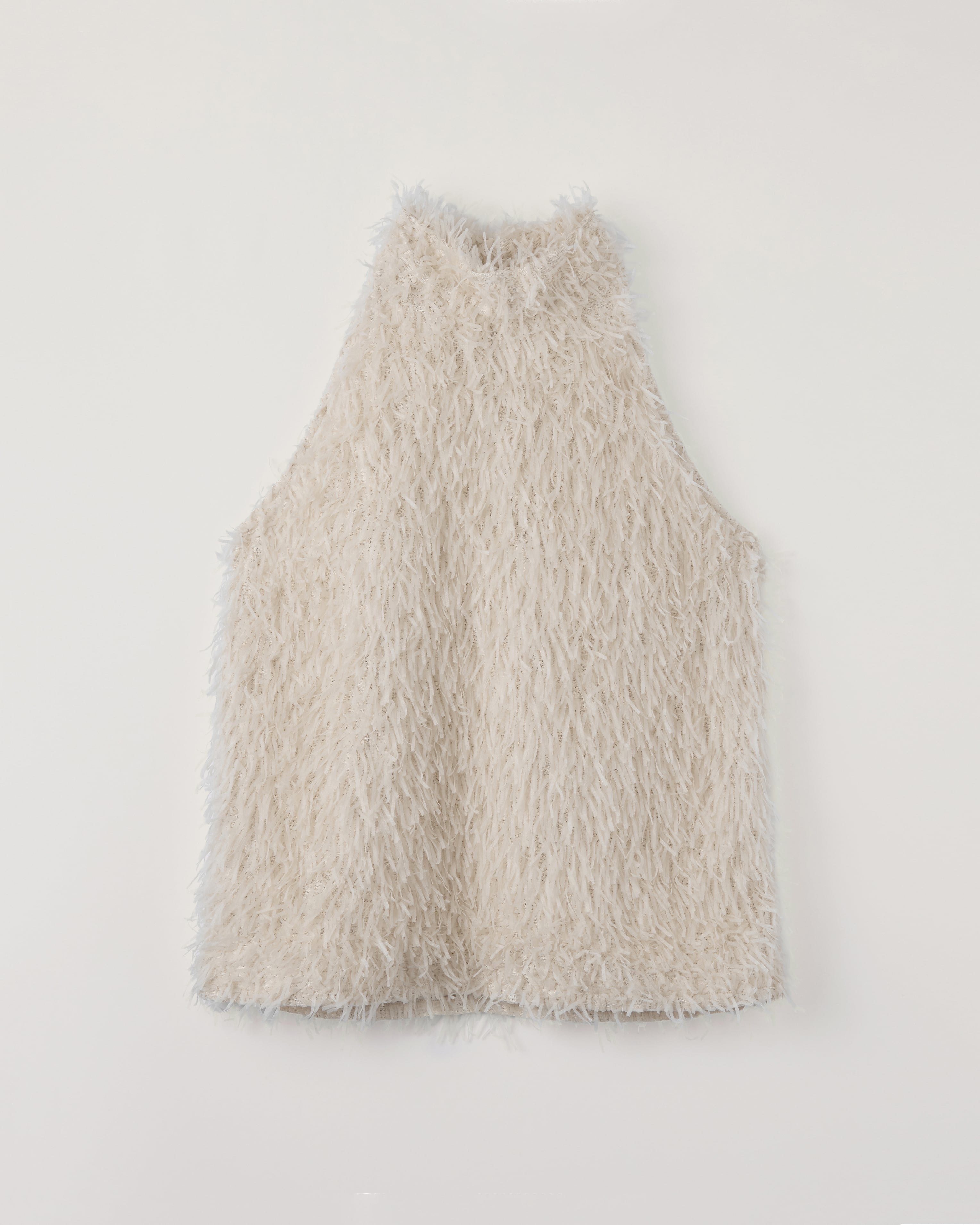 存在感のあるシャギー素材が目を引アメリカンスリーブトップス。