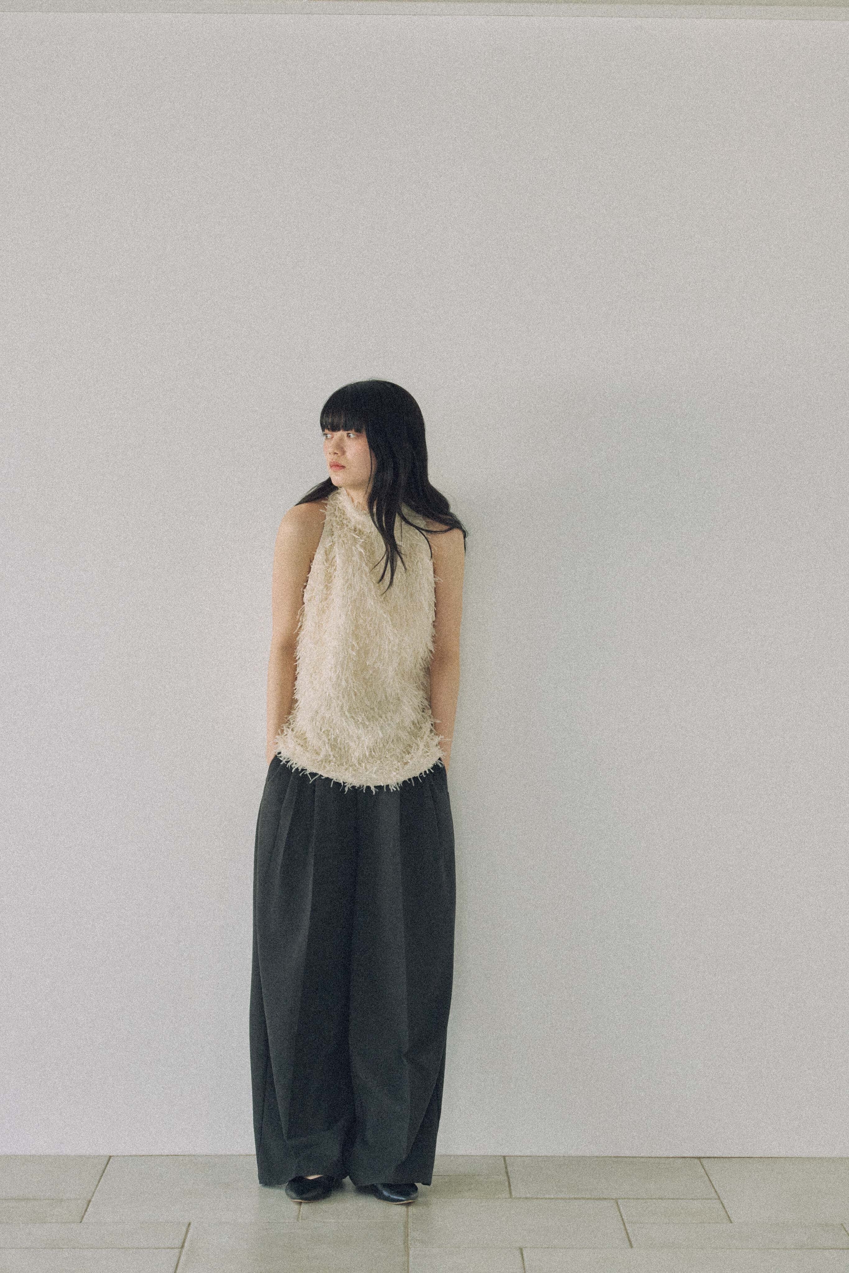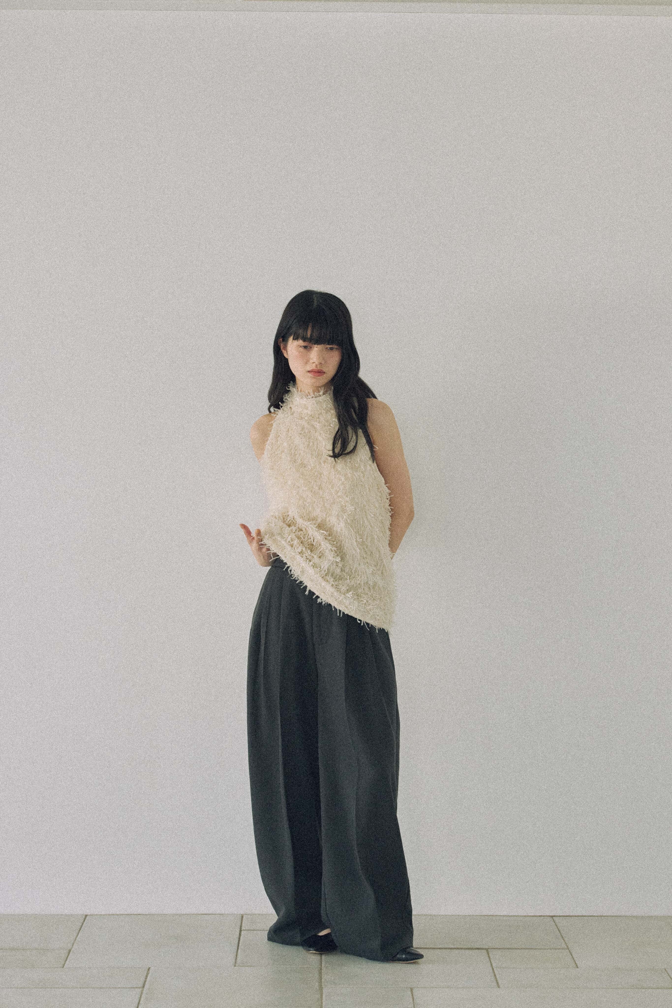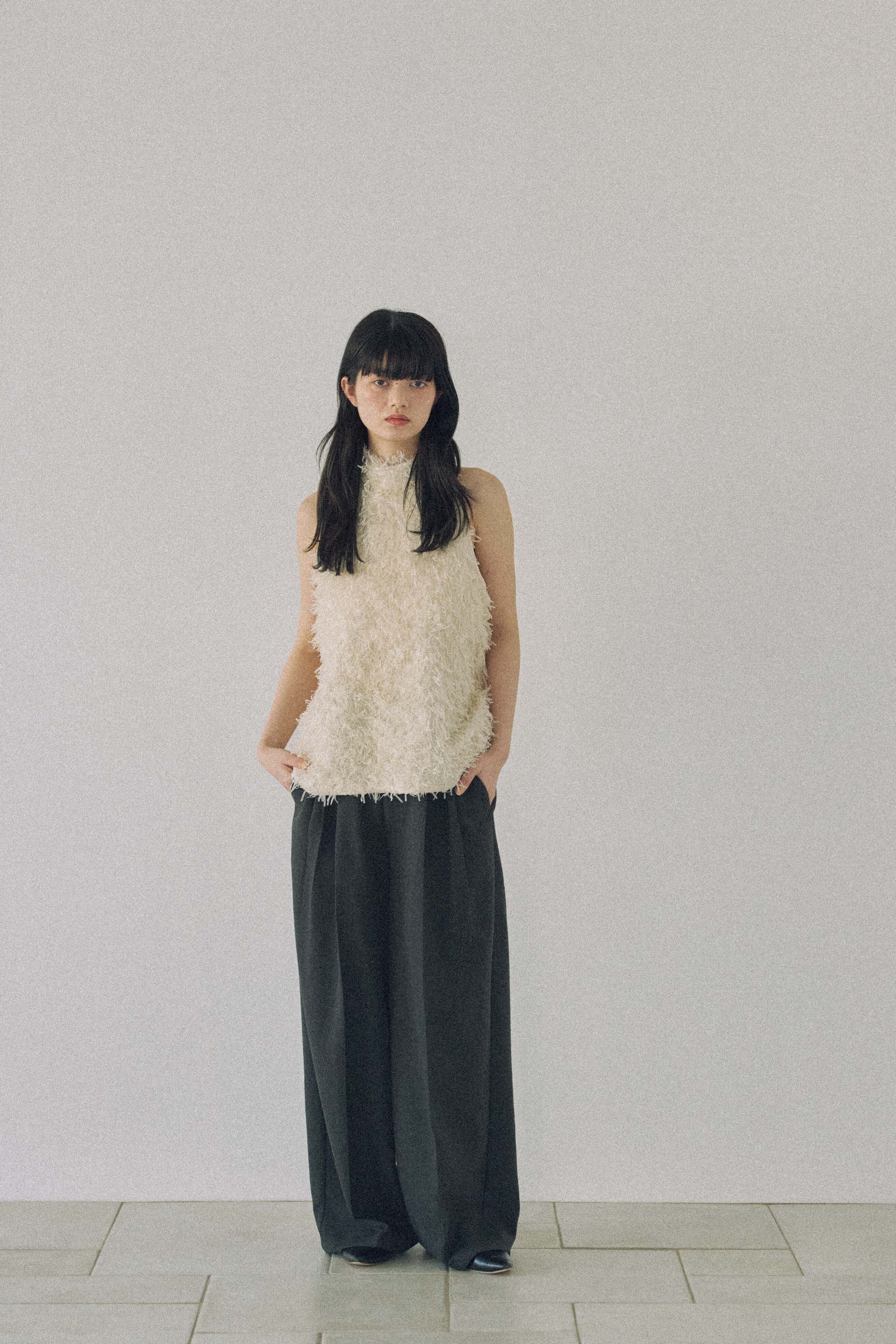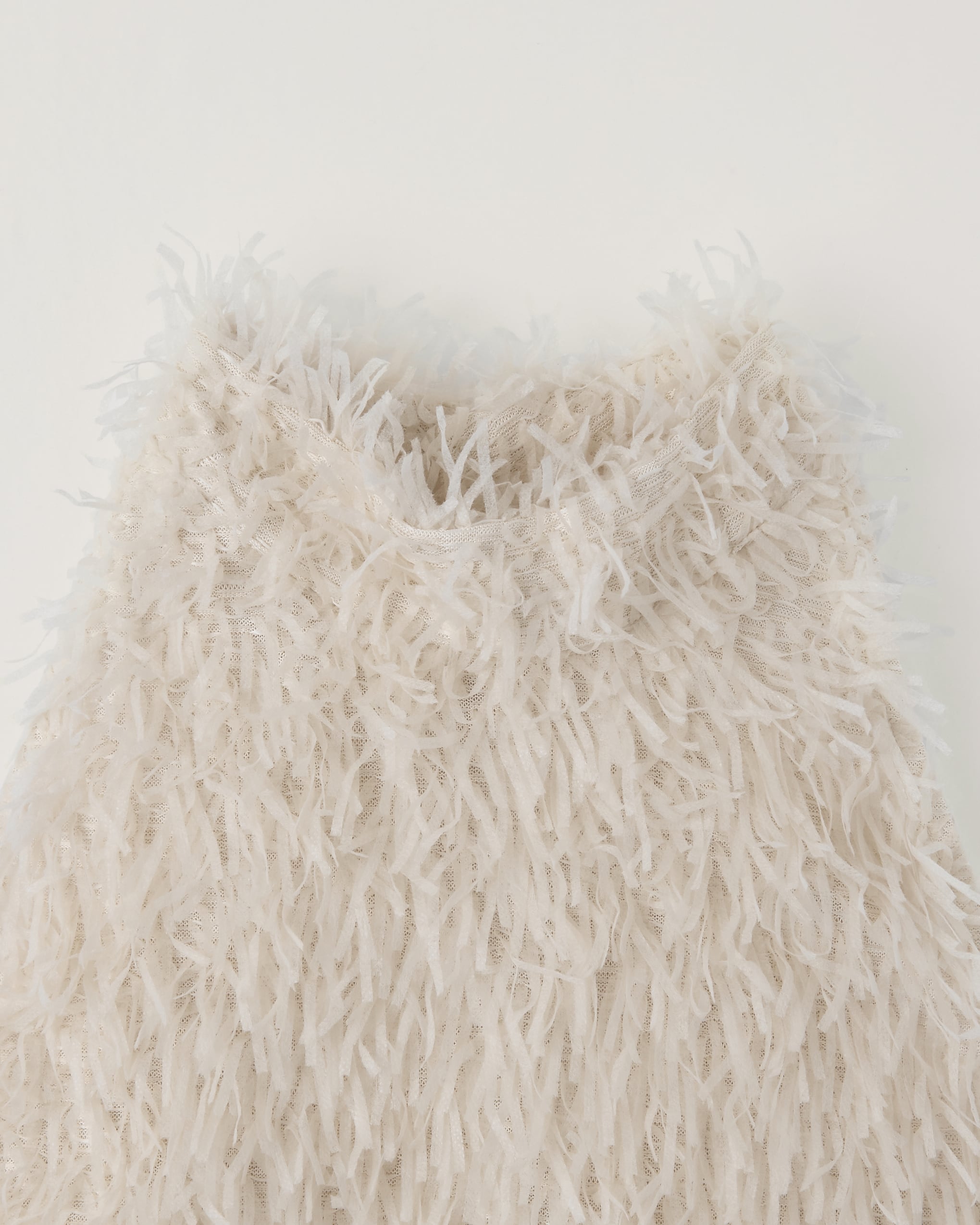 存在感のあるシャギー素材が目を引アメリカンスリーブトップス。