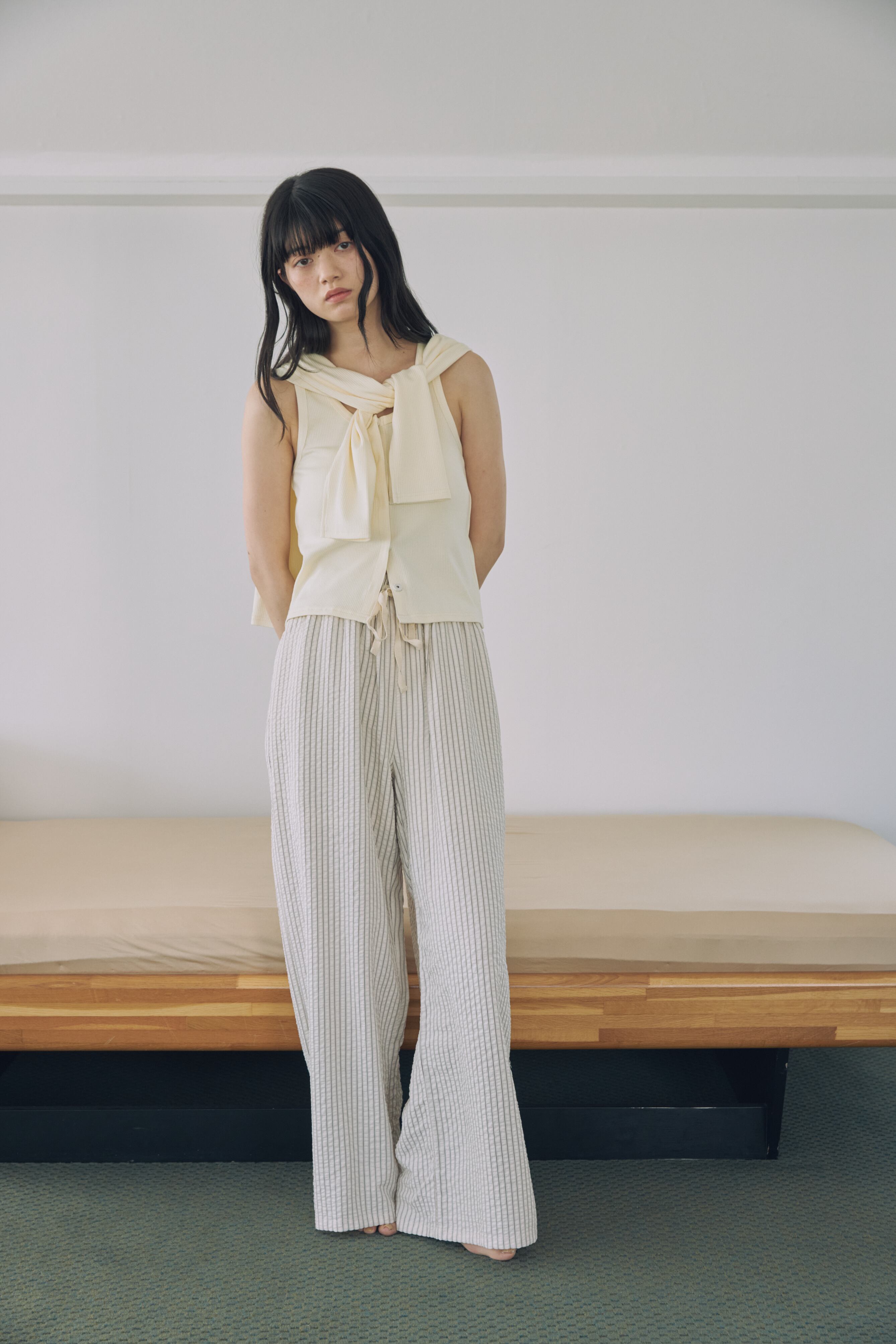 ワイドスラックスやタックパンツと合わせて、