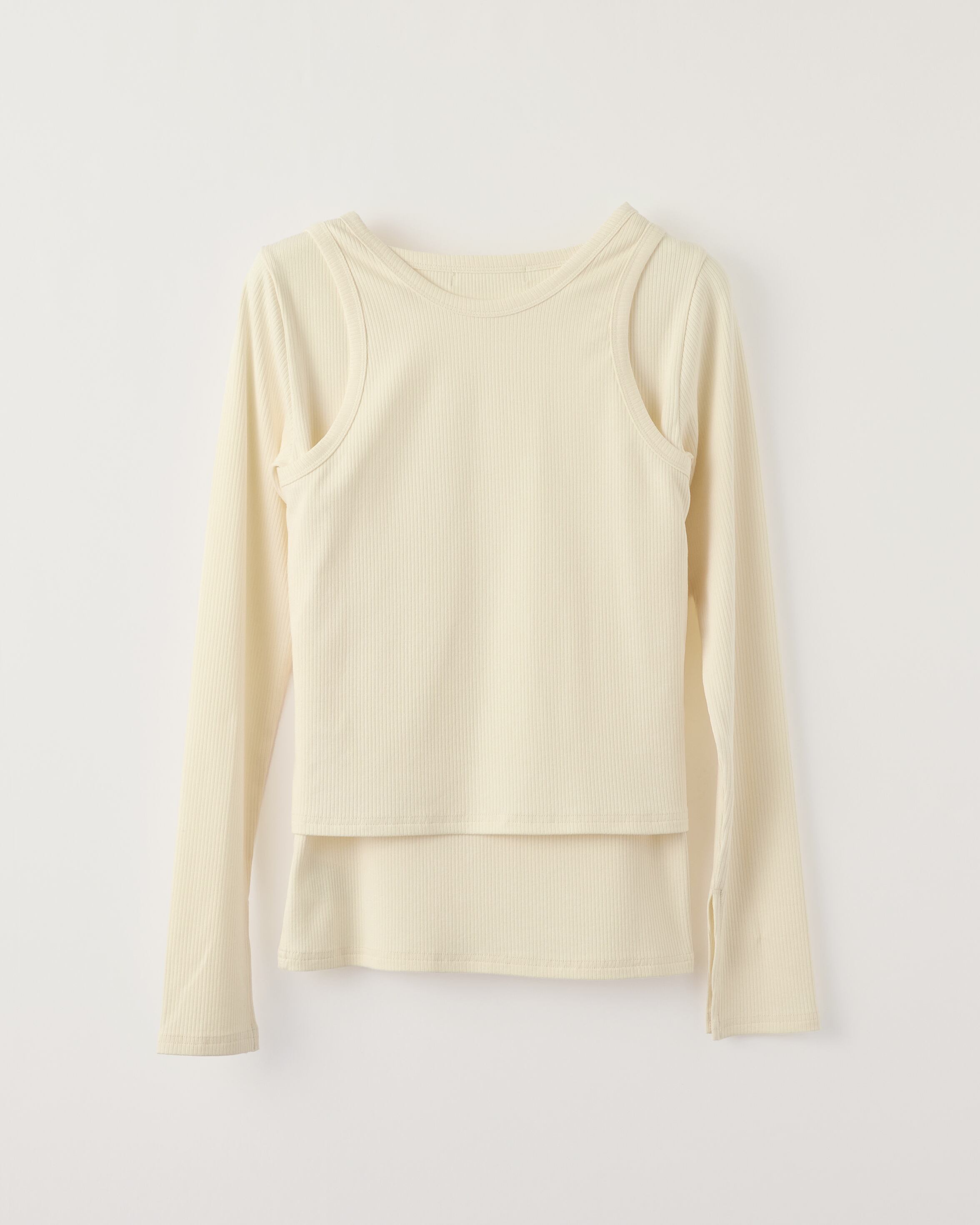 トップスと×タンクトップのレイヤードセット。