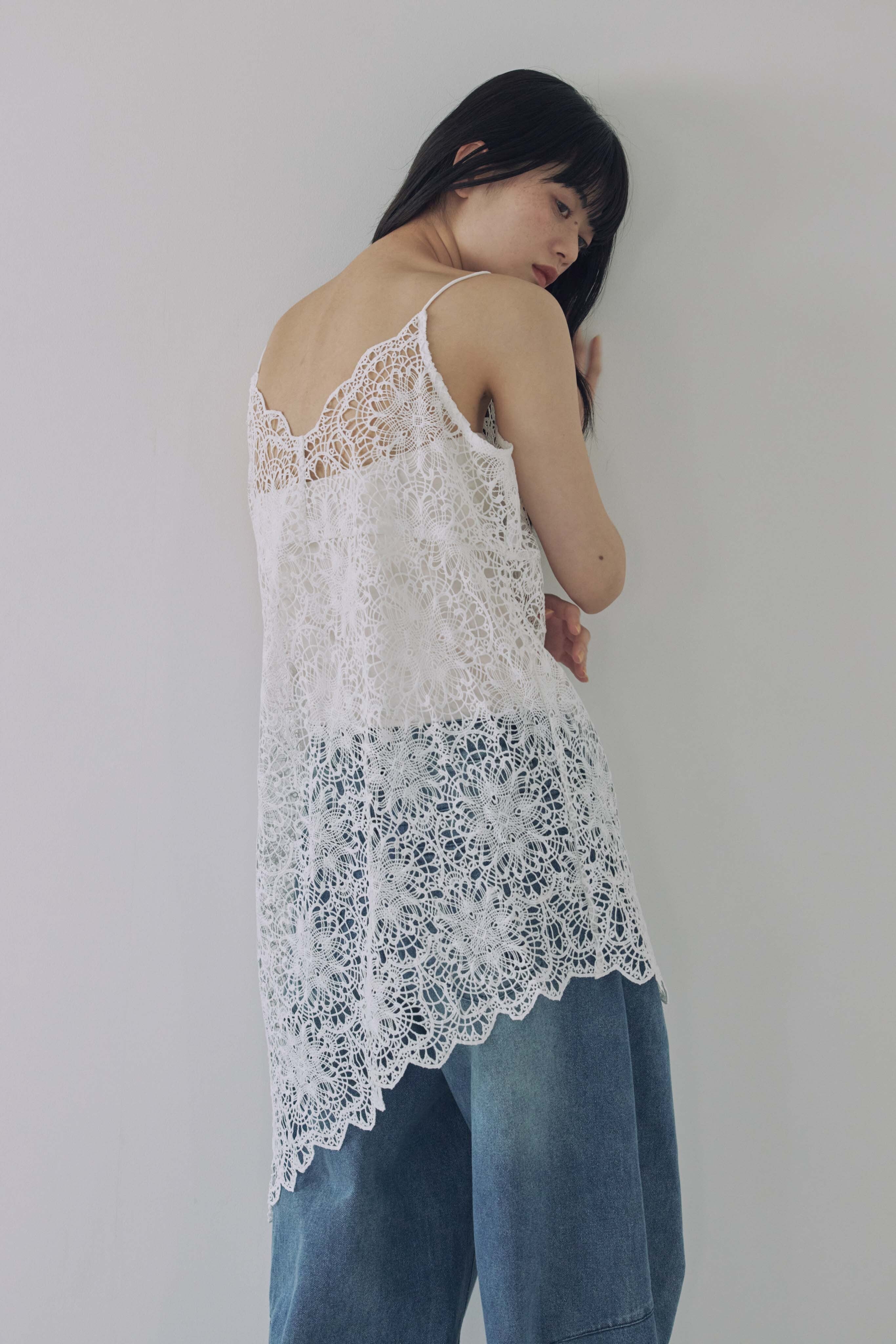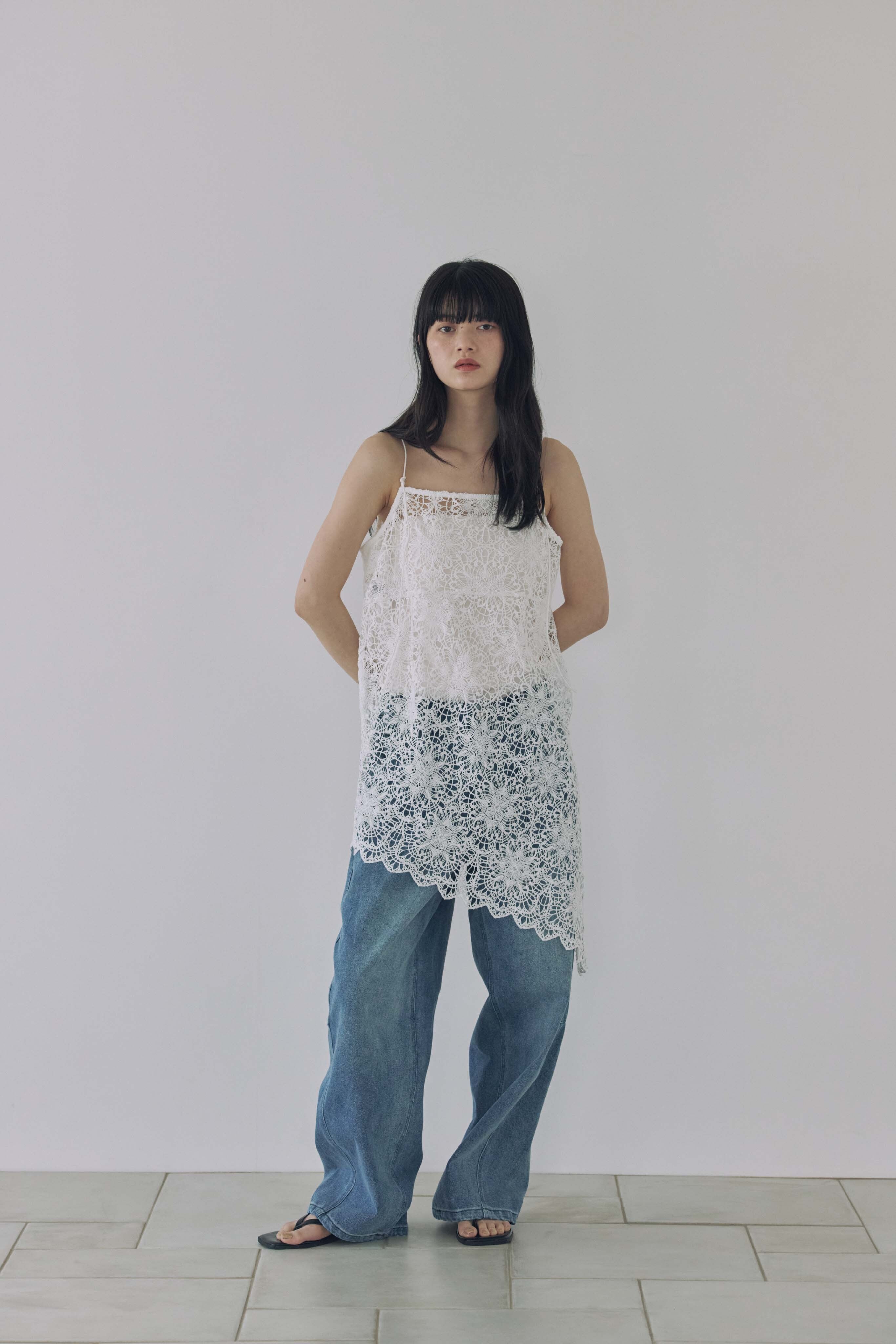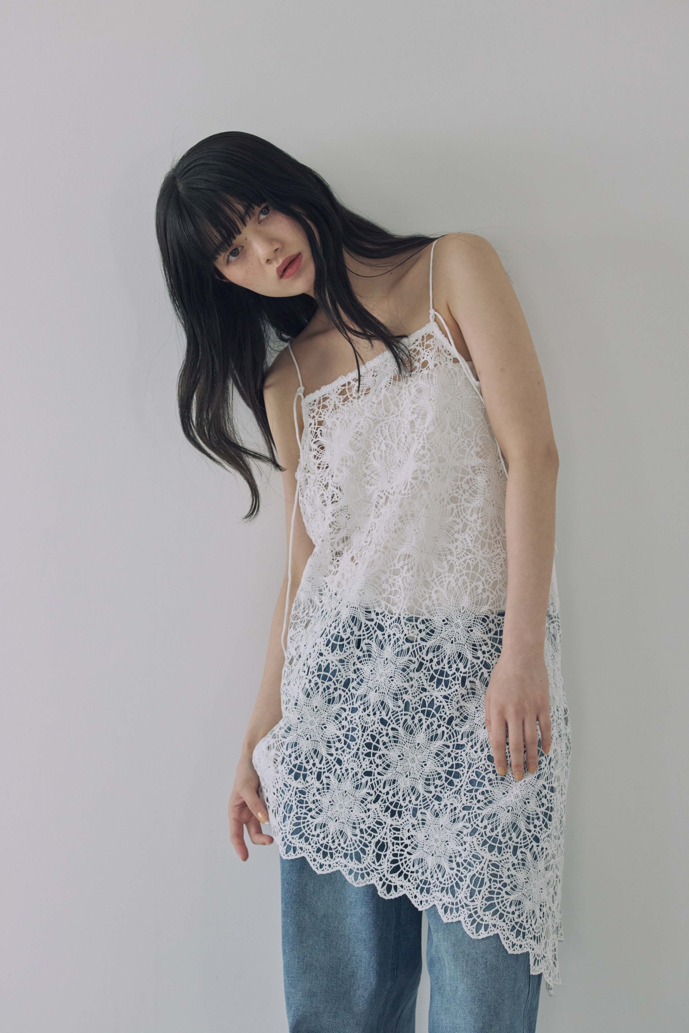 繊細なフラワーレースが目を惹く、レースキャミソール。