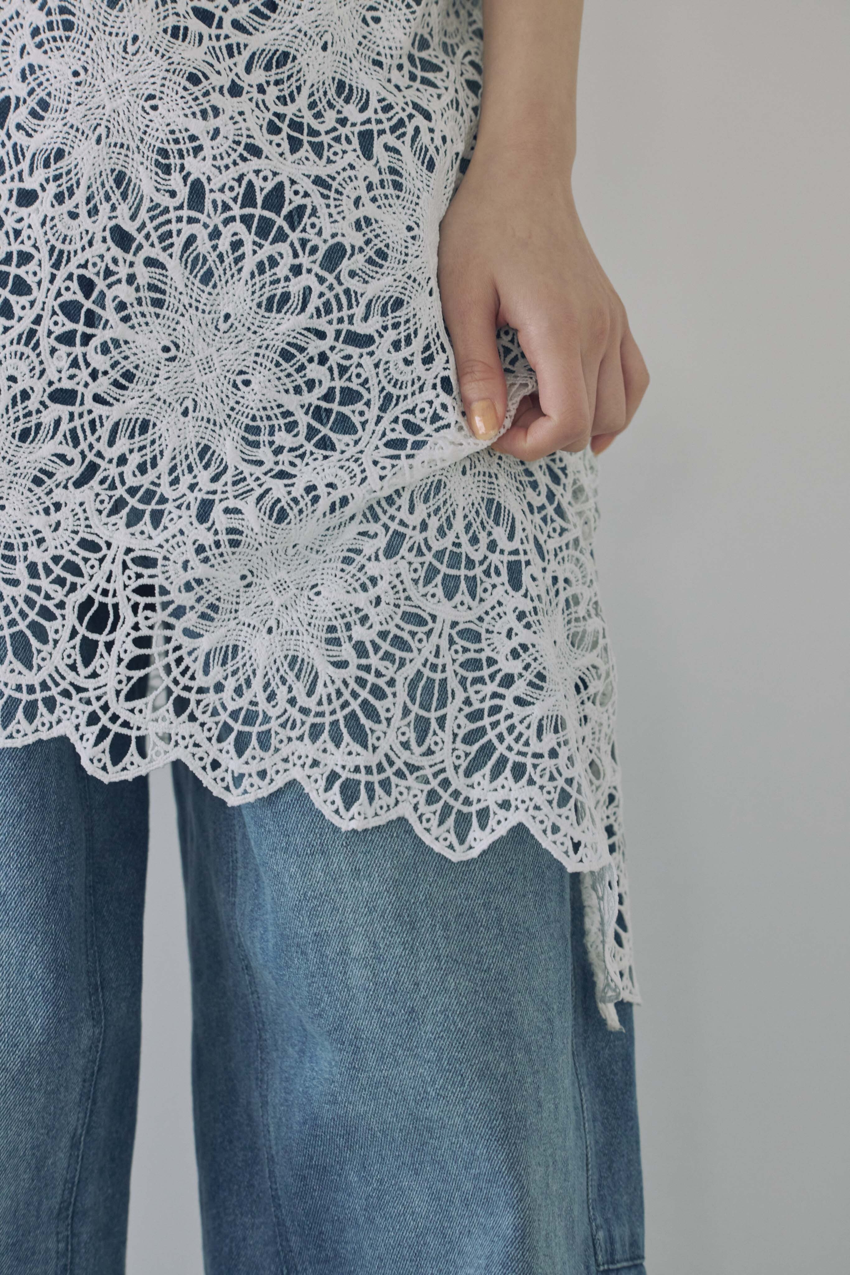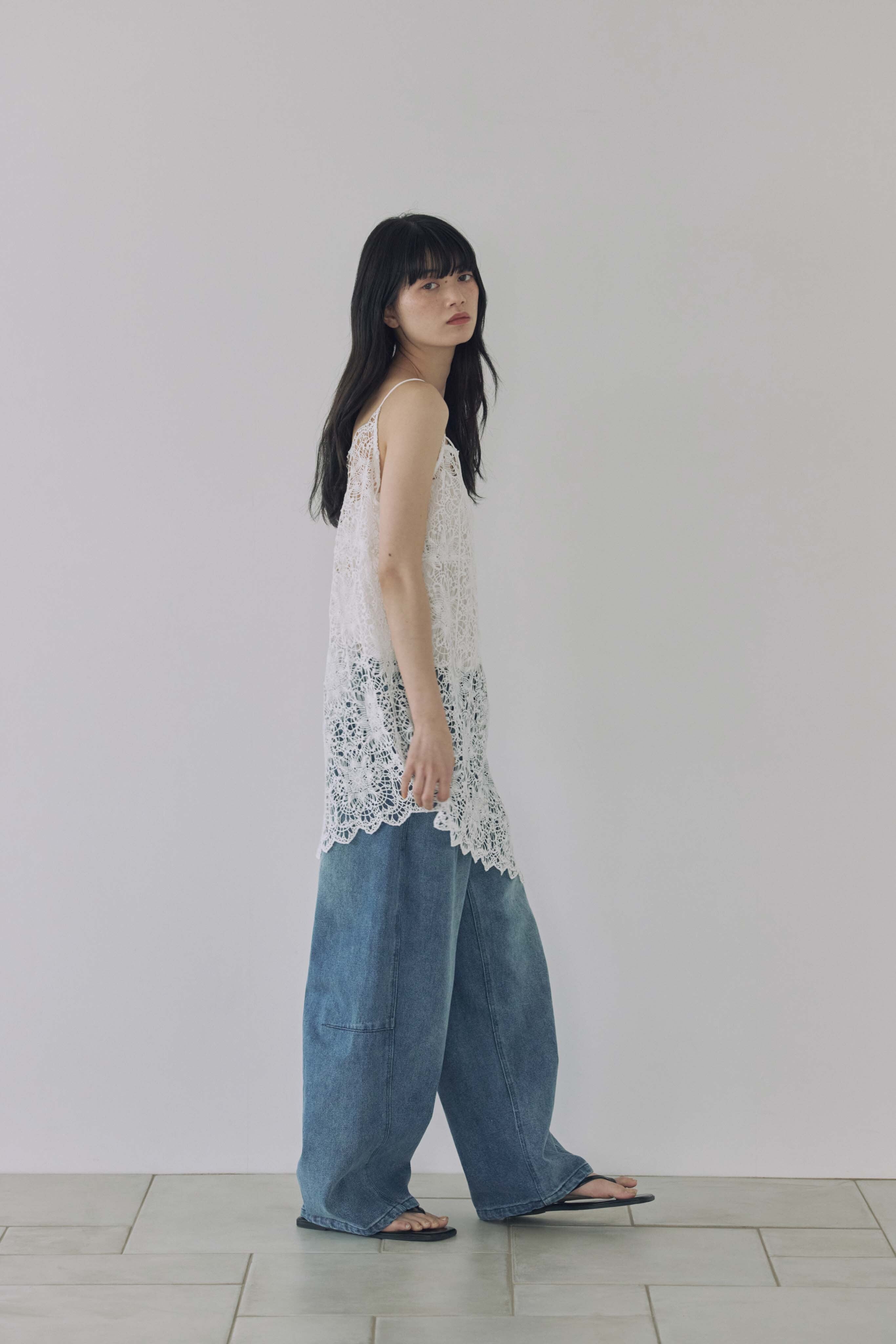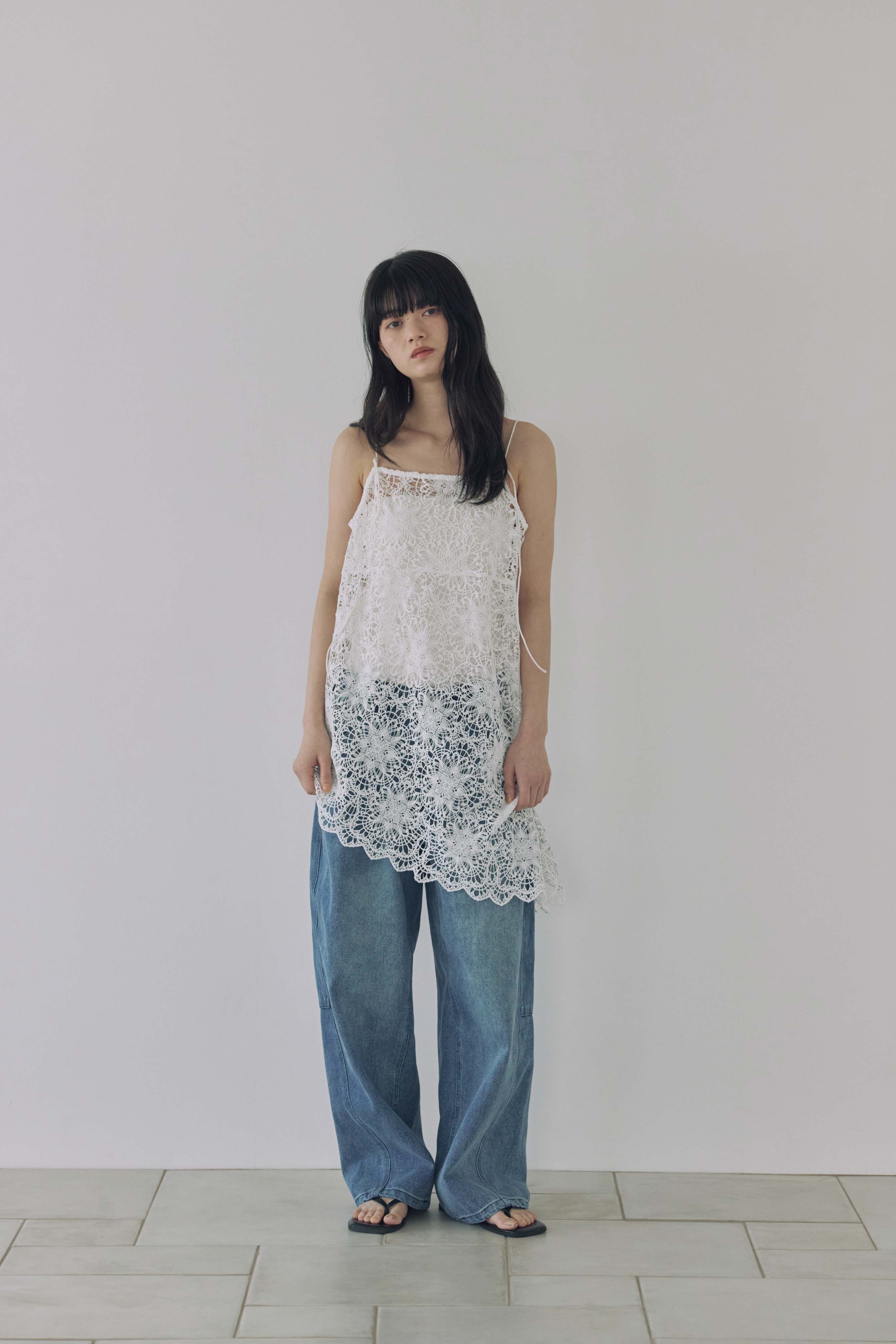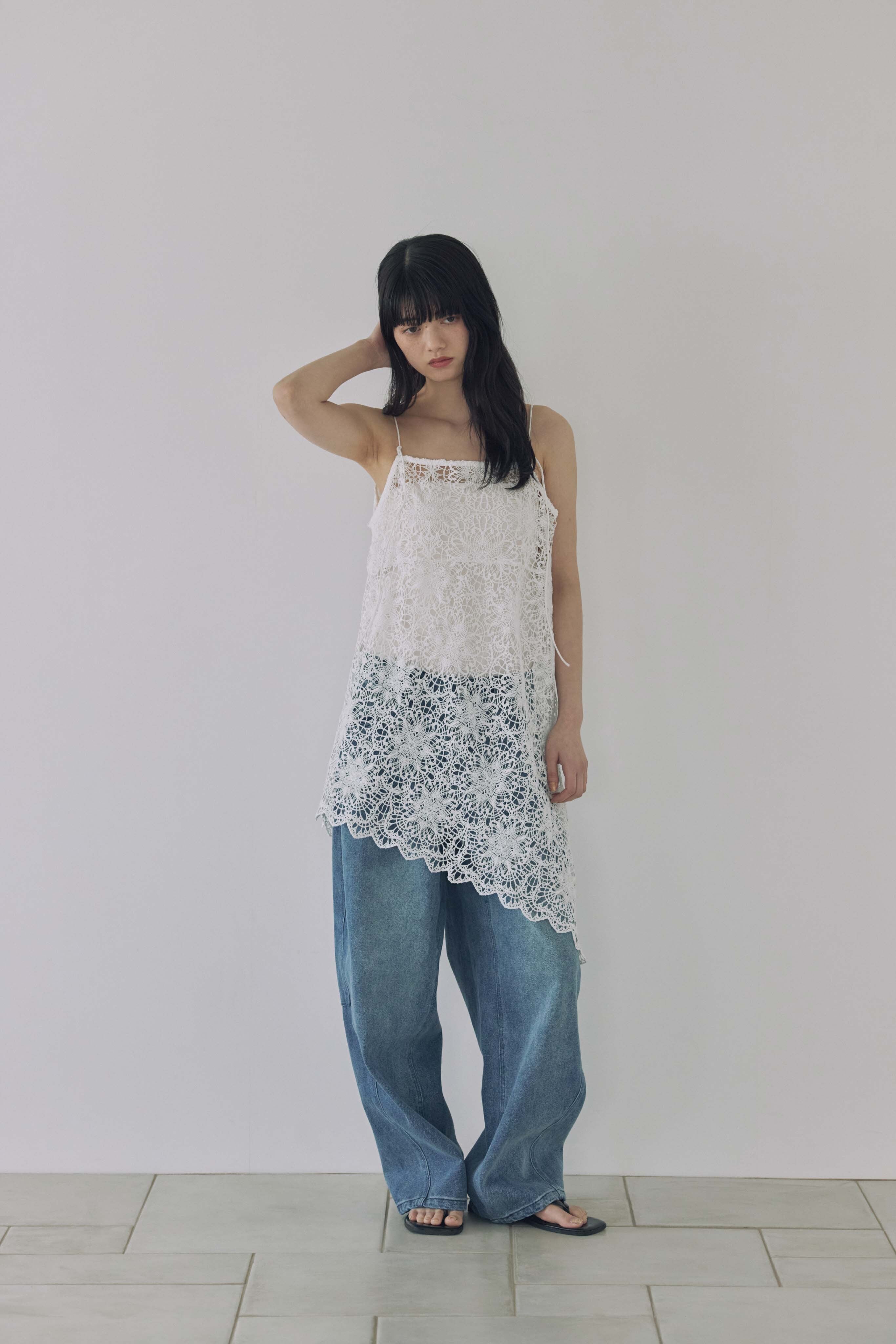 繊細なフラワーレースが目を惹く、レースキャミソール。