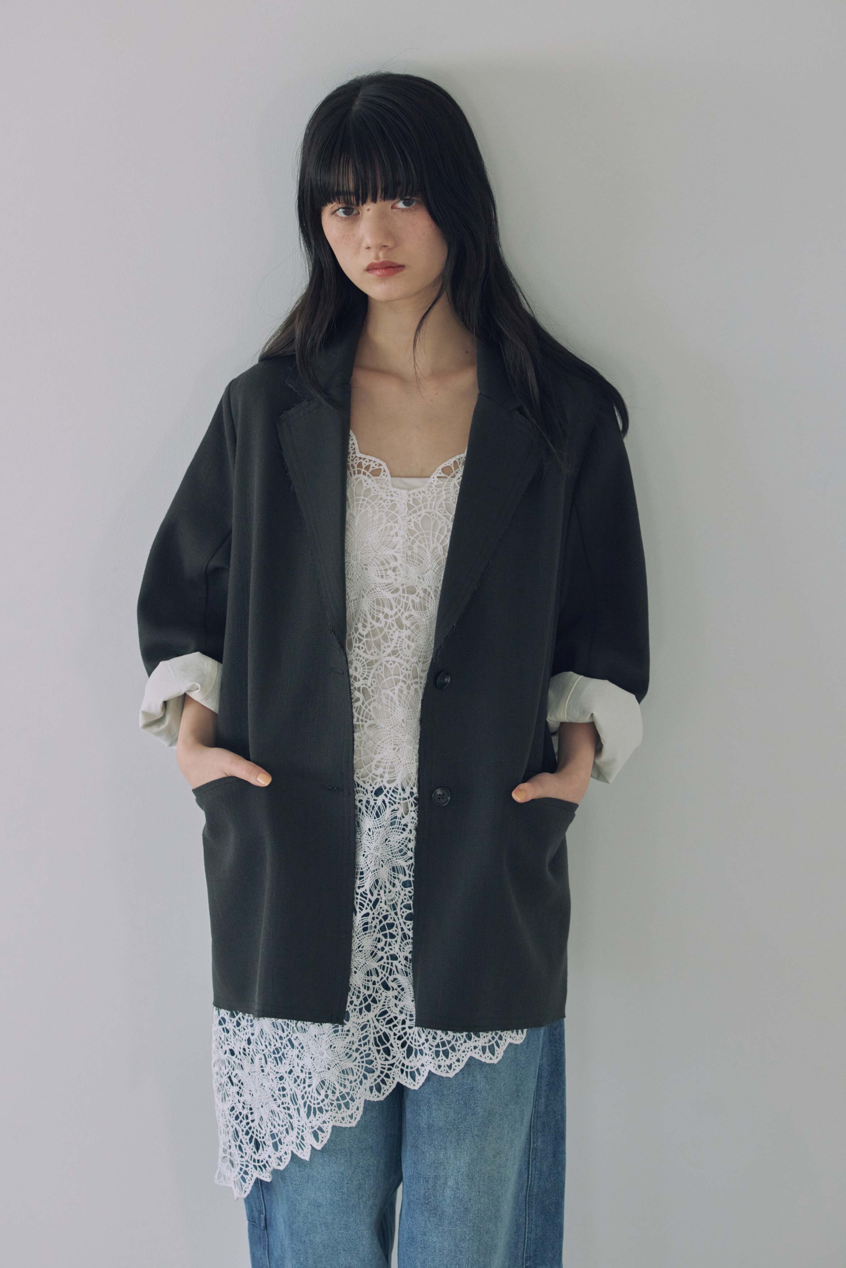 ジャケットのインナーとして仕込めば、上品なコーデに。