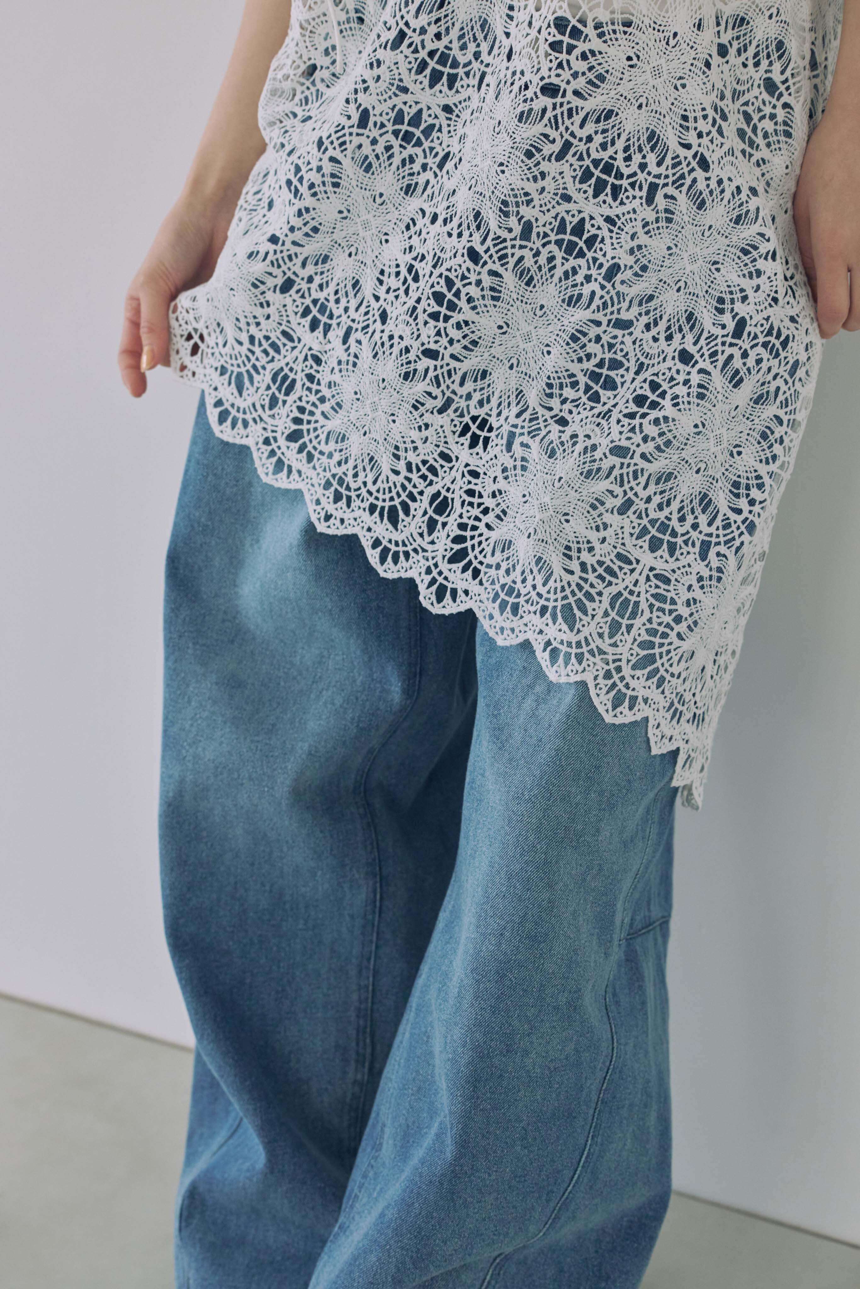 同系色のインナーと合わせて透け感を楽しむのもおすすめです