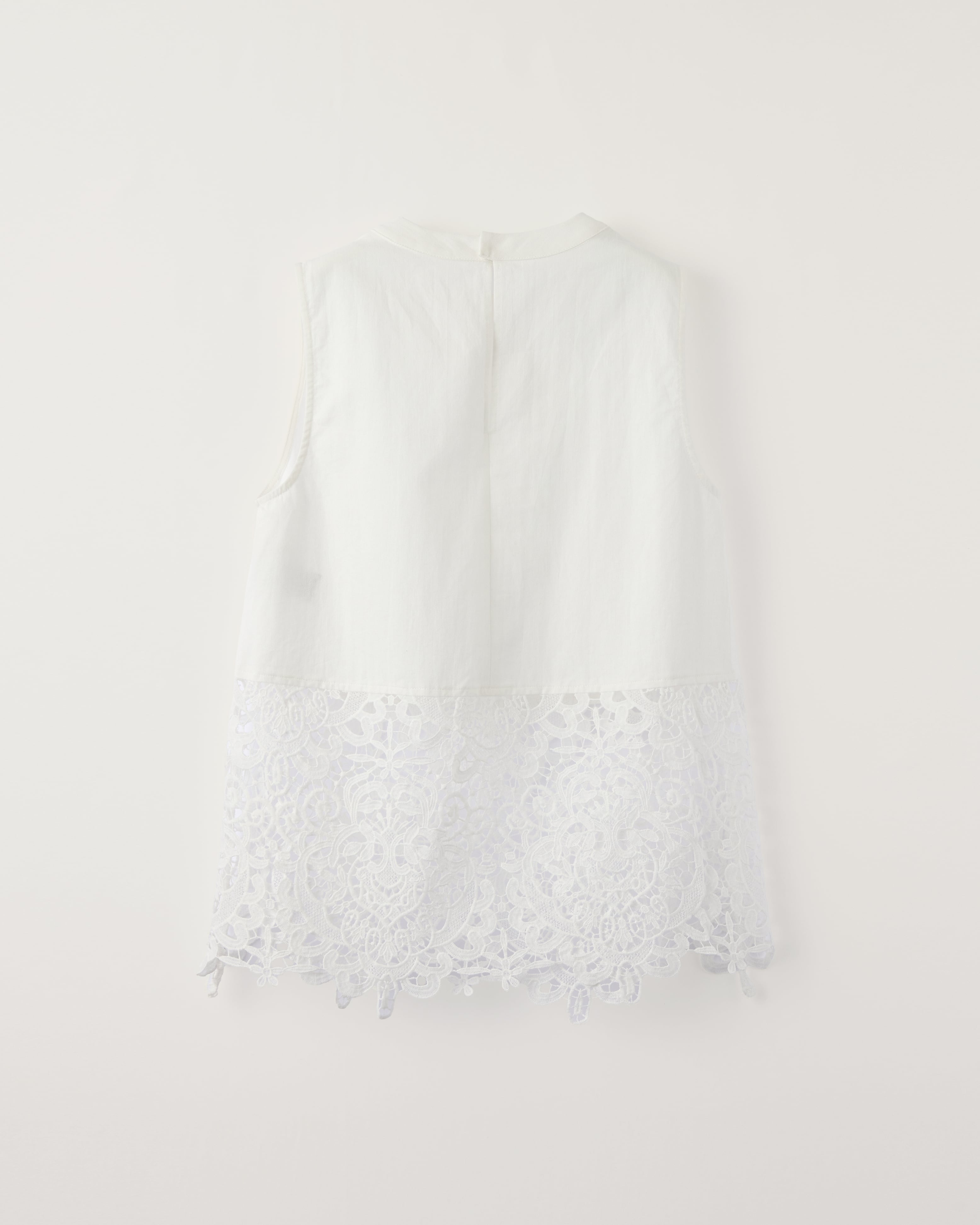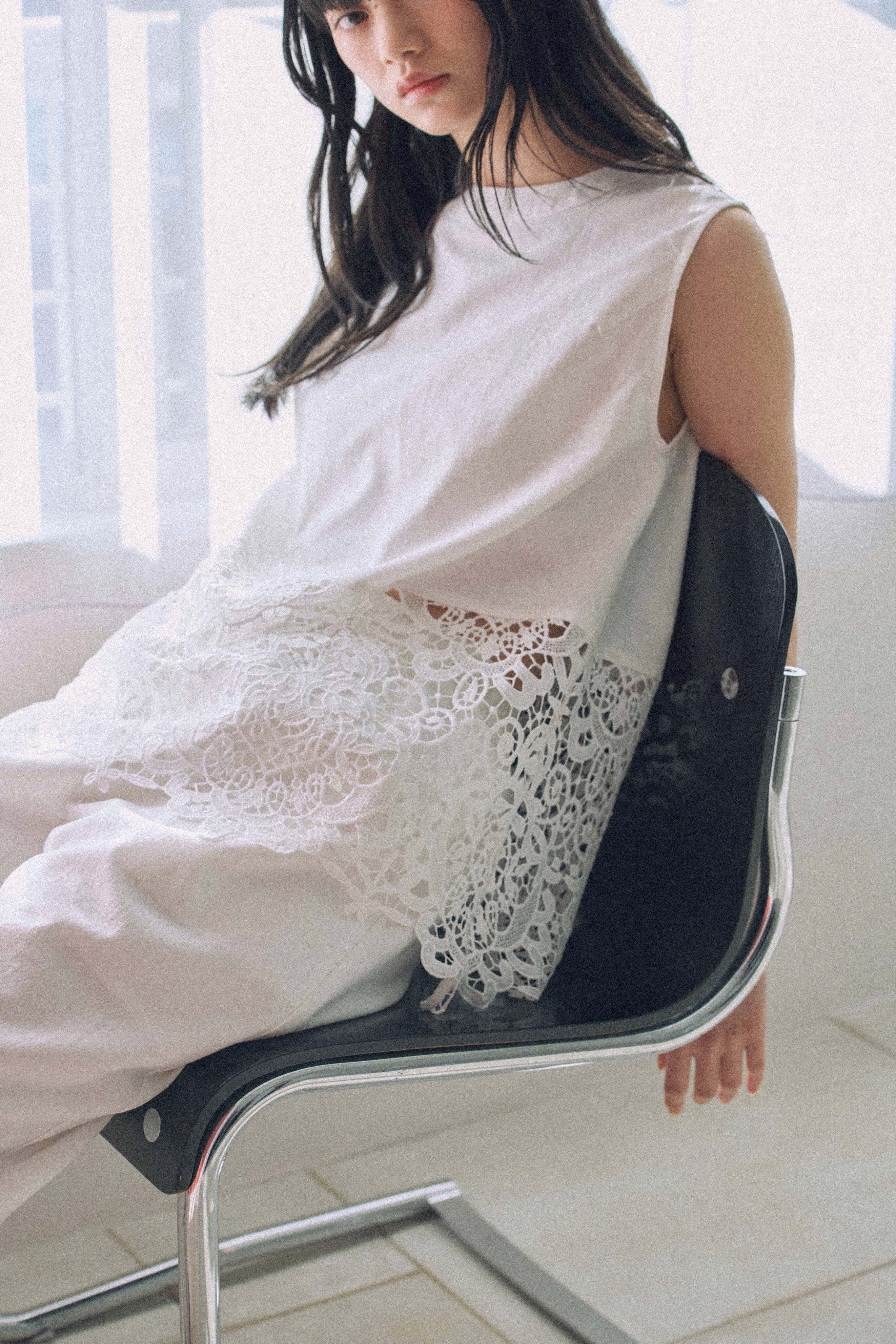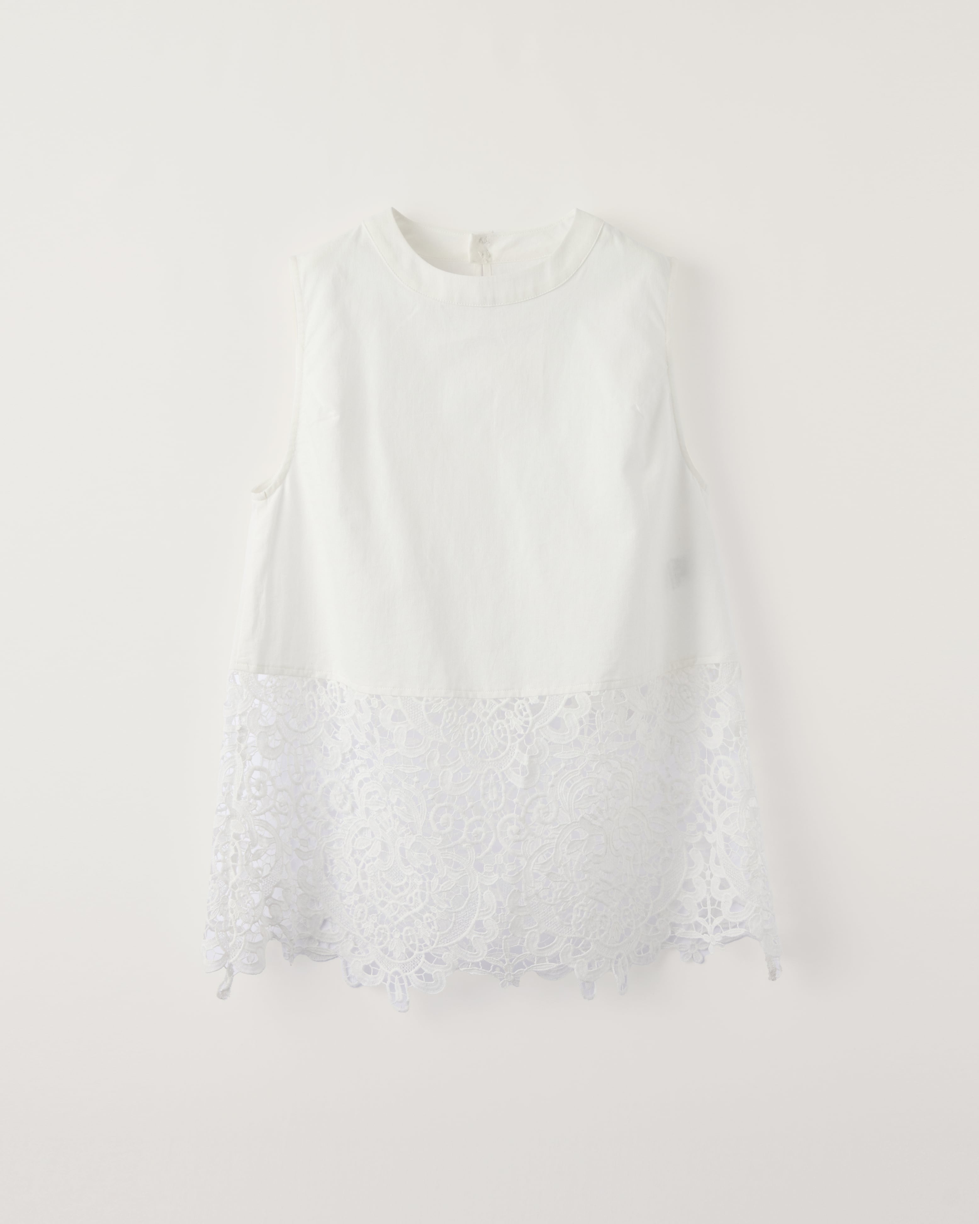 クリーンなコットン素材と裾にかけて軽やかなレースを切り替えたデザイン。