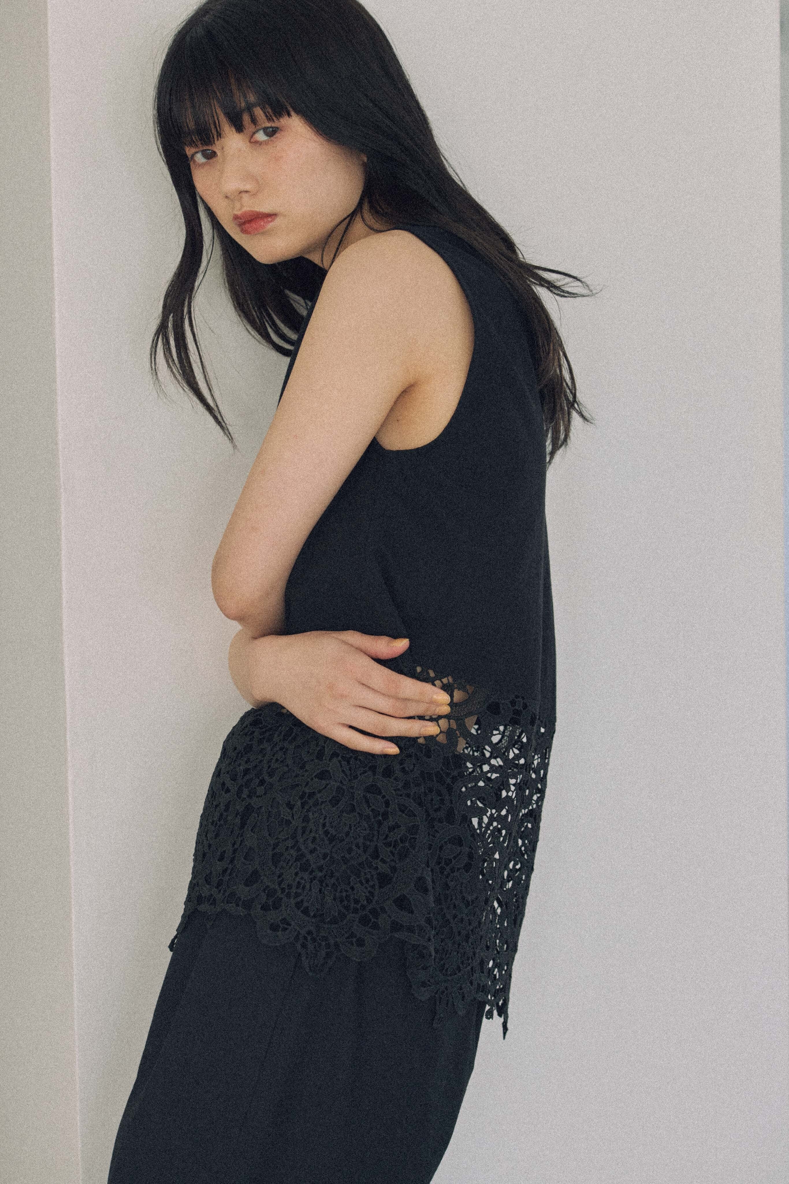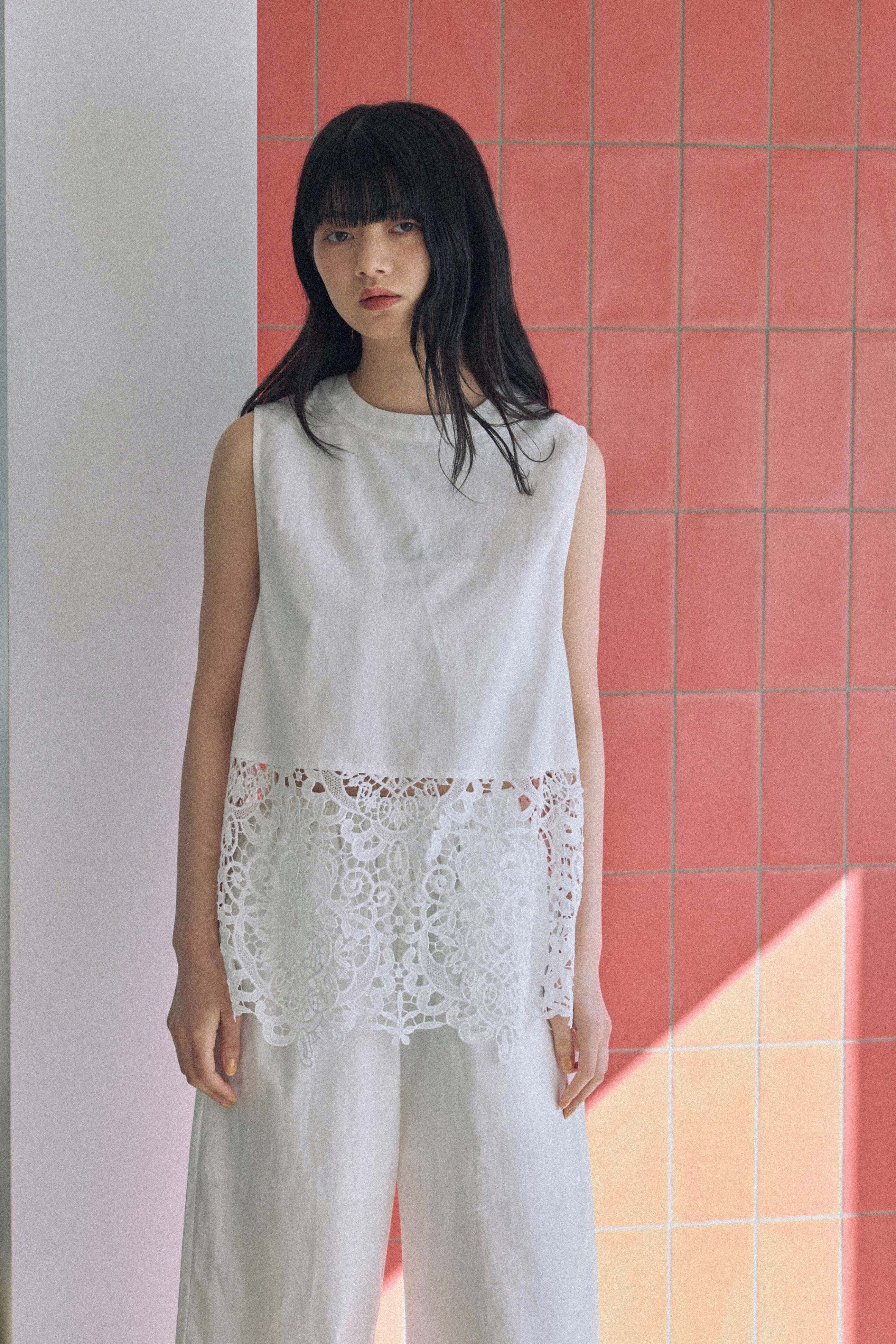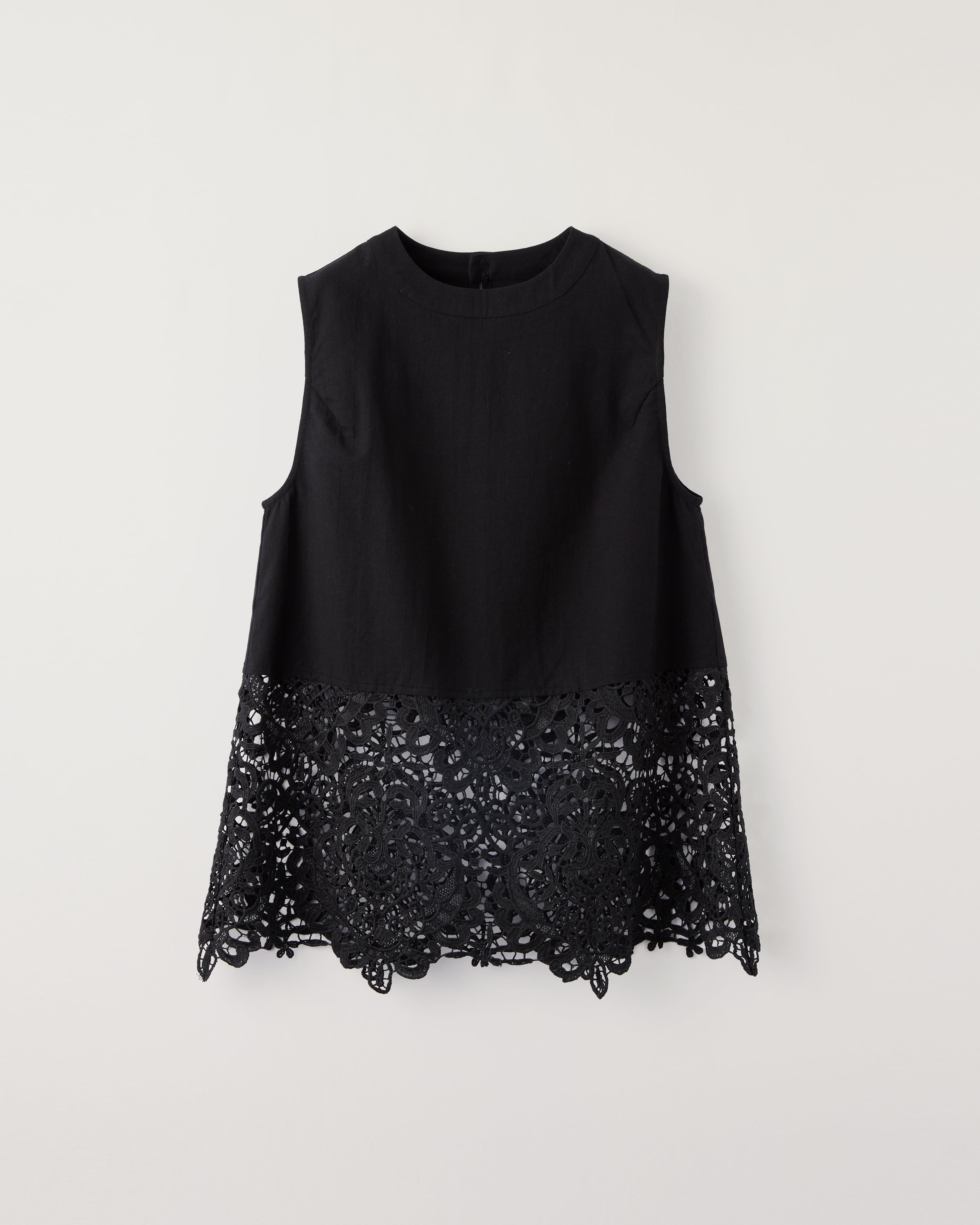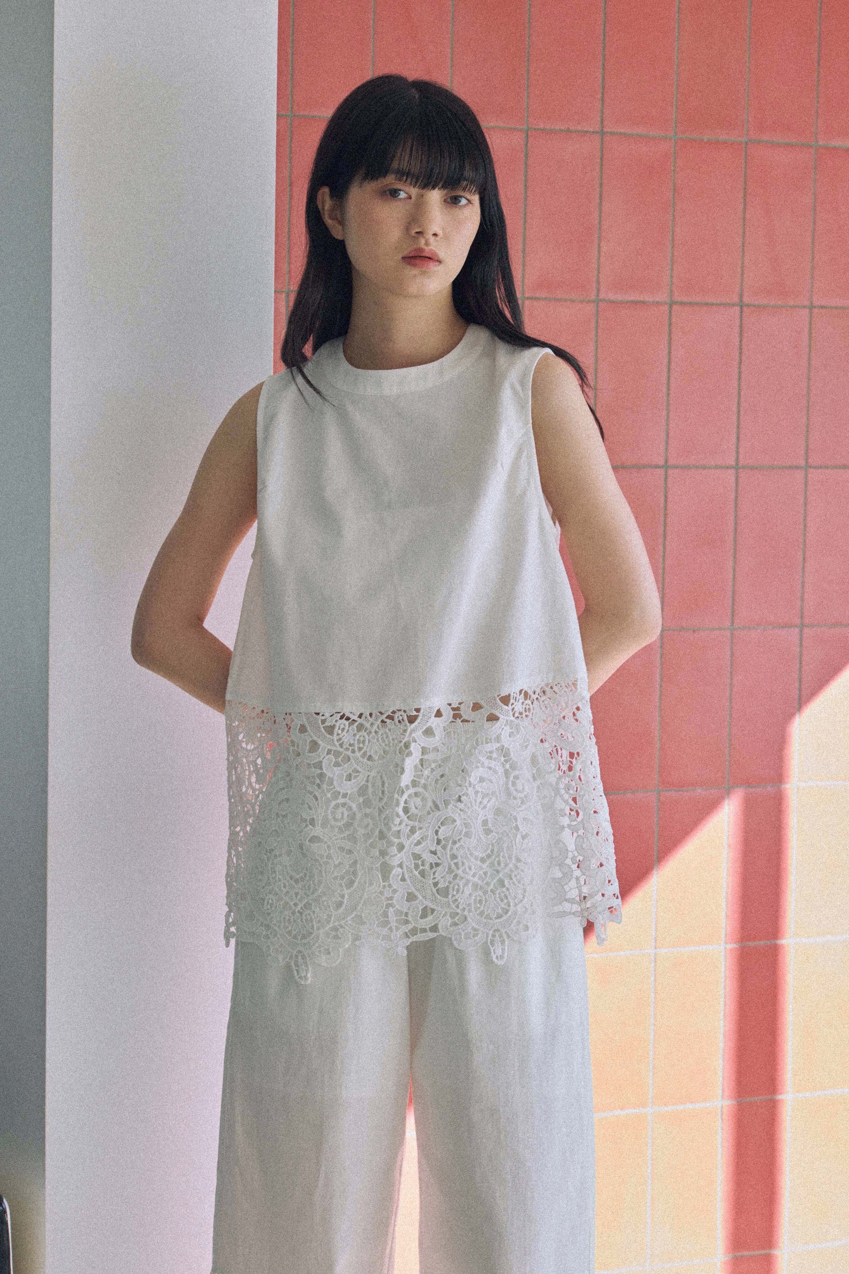 クリーンなコットン素材と裾にかけて軽やかなレースを切り替えたデザイン。
