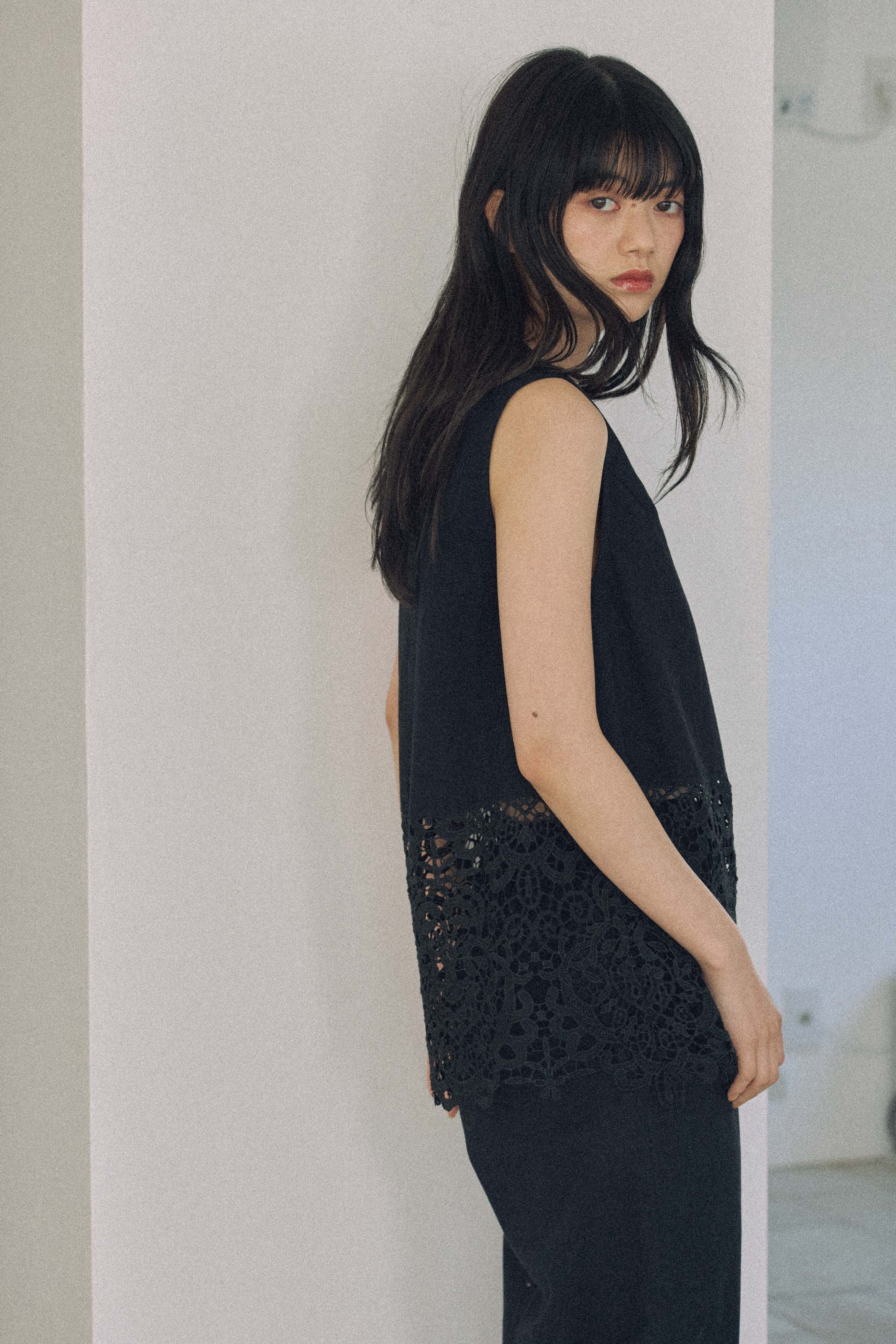 シンプルなシルエットに、やわらかなレースの質感が加わることで、