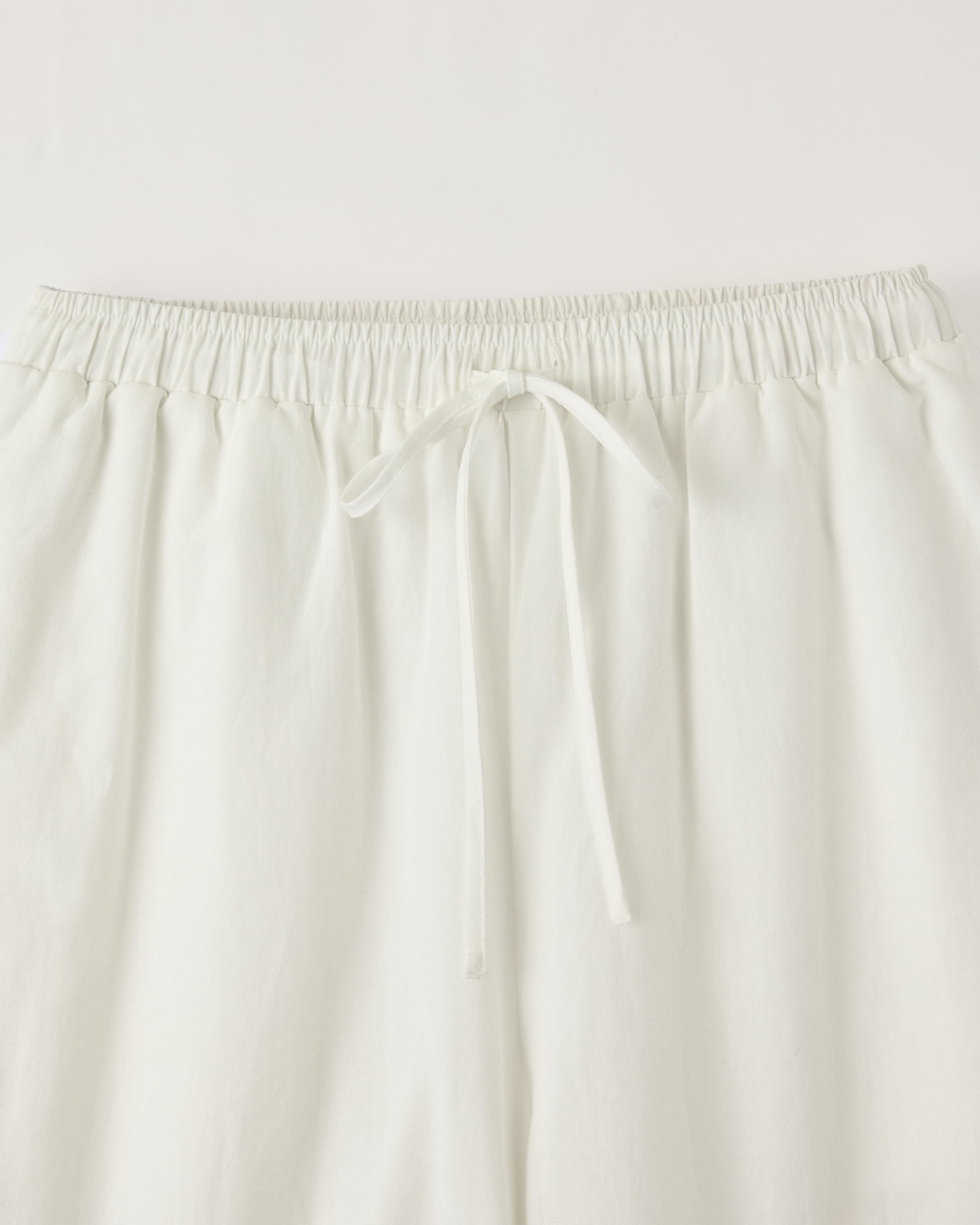 締め付けのないゆとりあるフォルムとウエストゴムで心地よく着られるのも魅力。